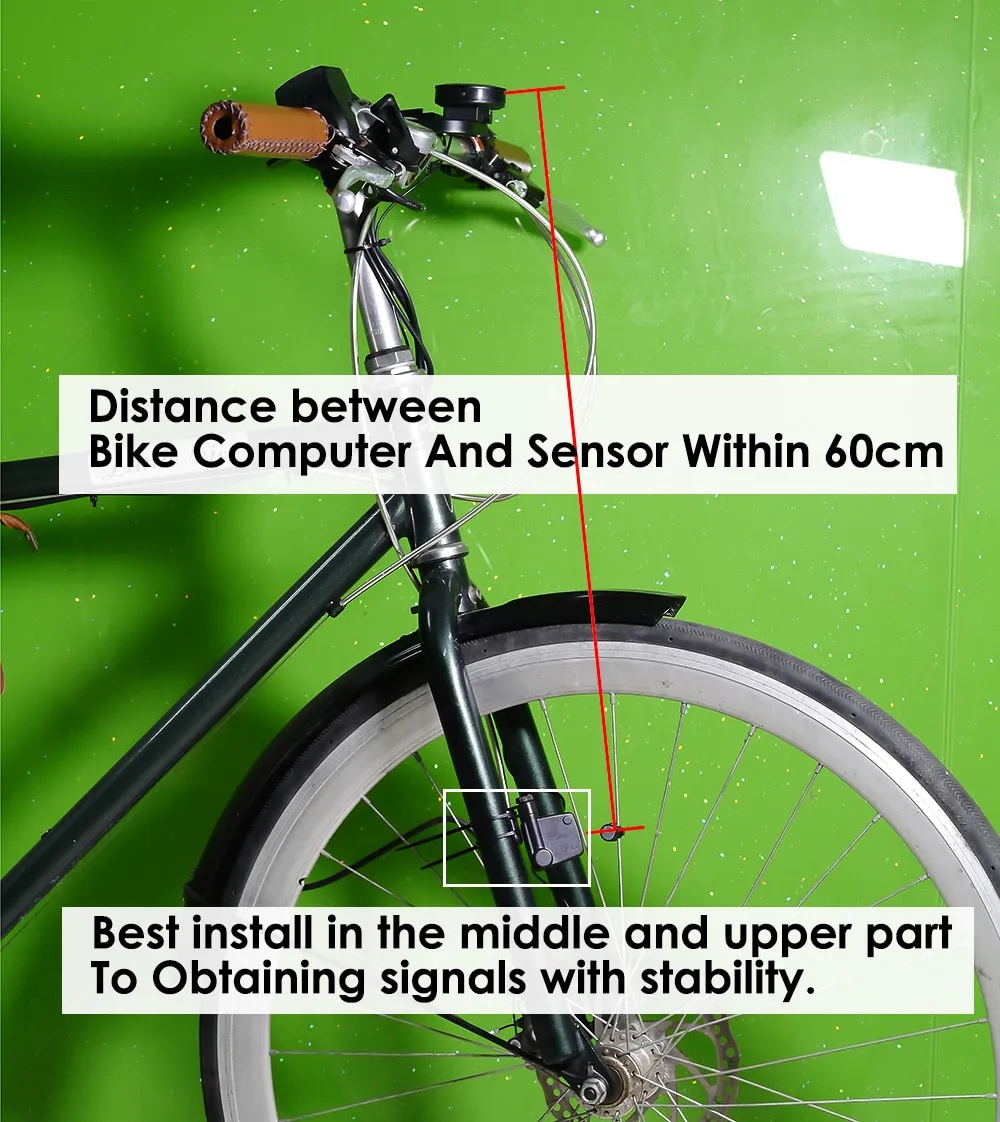 - Attach the sensor and magnet to the front wheel of the bicycle.