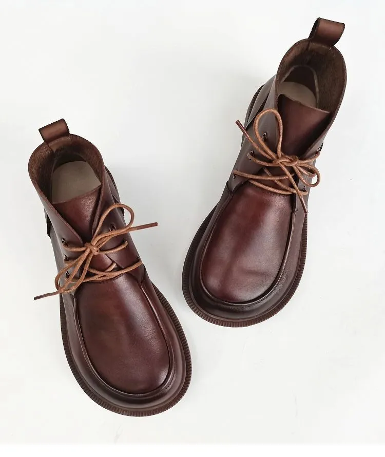 Big Toe Ankle Boots Pure Leather High-top Women's Shoes