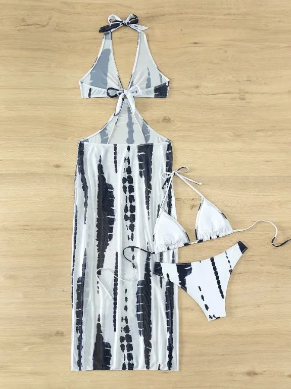 cover-up or sarong. This complete set provides versatility, allowing you to mix and match or wear all pieces together for a chic beach look.