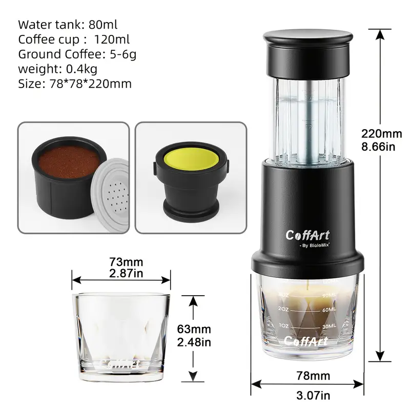 BIOLOMIX Portable Espresso Maker 2-in-1 for Coffee & Tea