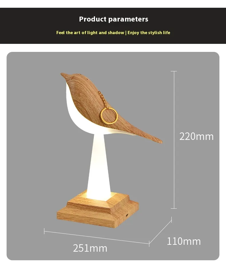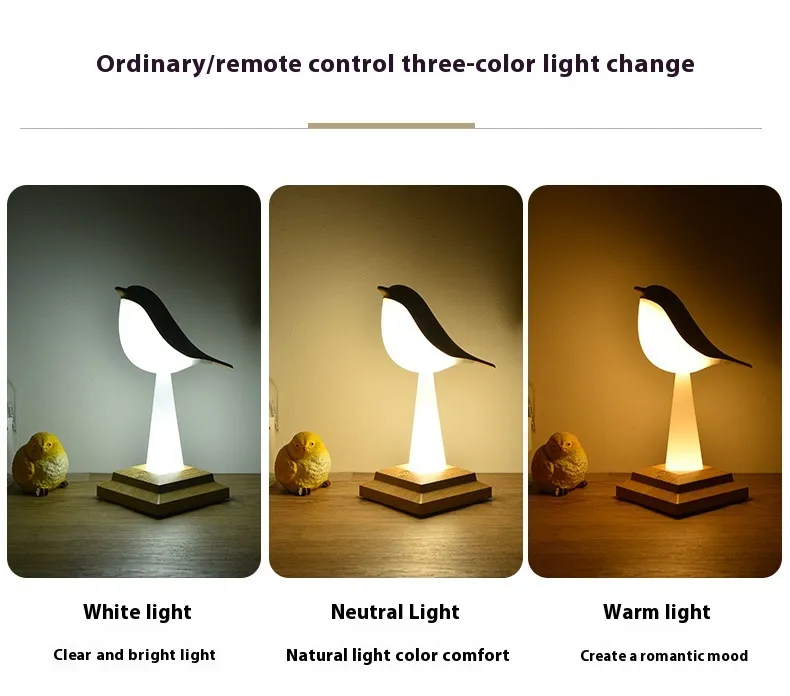 Versatile Design for Any Space: This Detachable Bird Lamp is as functional as it is charming. The bird-shaped light can be detached from its base, making it a perfect tiny lamp for small spaces or a decorative bird light lamp.Whether you use it as a bird table lamp on your desk or a cordless desk lamp in your living room, its versatility shines through. Plus, its compact size makes it ideal for small bird table lamp setups in nurseries, offices, or cozy corners.