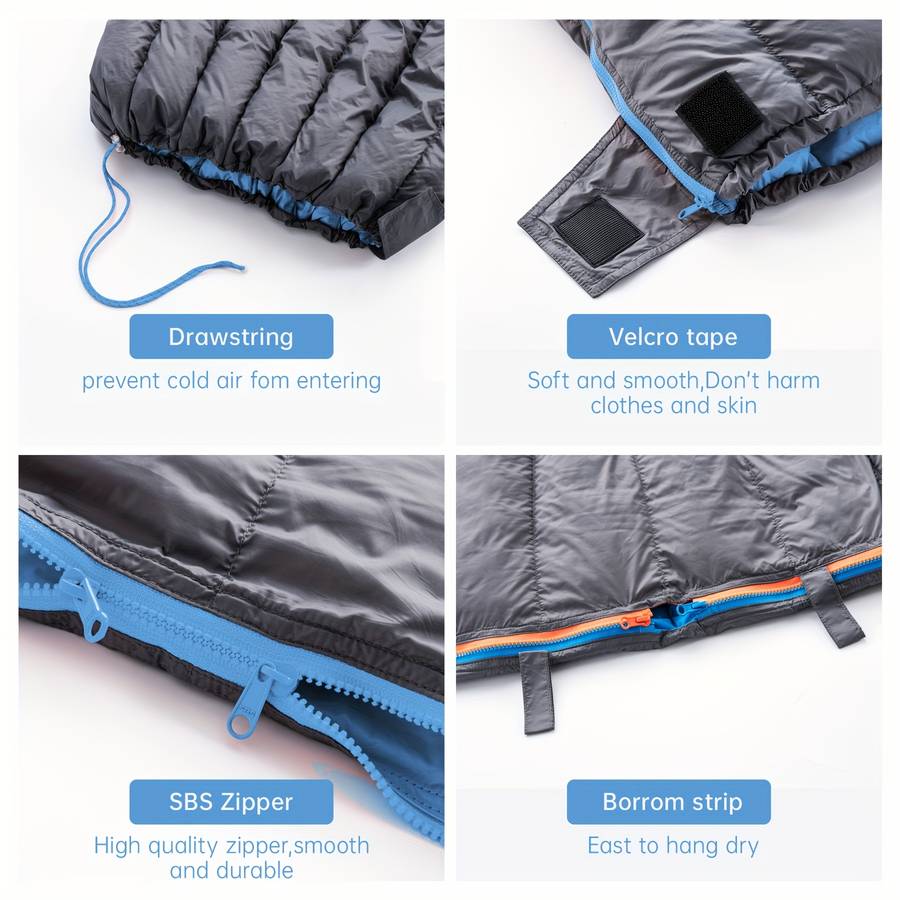 Crafted with 90% down and 10% duck down insulation, this sleeping bag delivers superior warmth while being lightweight and compressible. The nylon fabric is durable, water-resistant, and easy to pack, making it perfect for extended trips or minimalist camping setups.