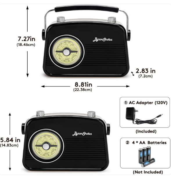 Black AM FM Radio – Retro Style, Modern Sound, Perfect for On-the-Go Listening
