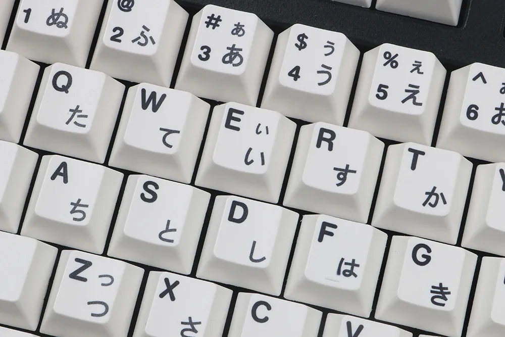 Upgrade your typing setup with the Black and White Japanese Minimalist Sublimation Keycap set, designed for enthusiasts who value clean aesthetics, timeless monochrome style, and high-performance durability. These keycaps feature minimalist legends in Katakana/Hiragana Japanese characters combined with classic Latin alphabet legends, adding a unique cultural touch without compromising functionality.