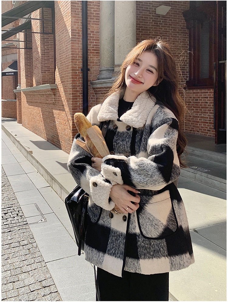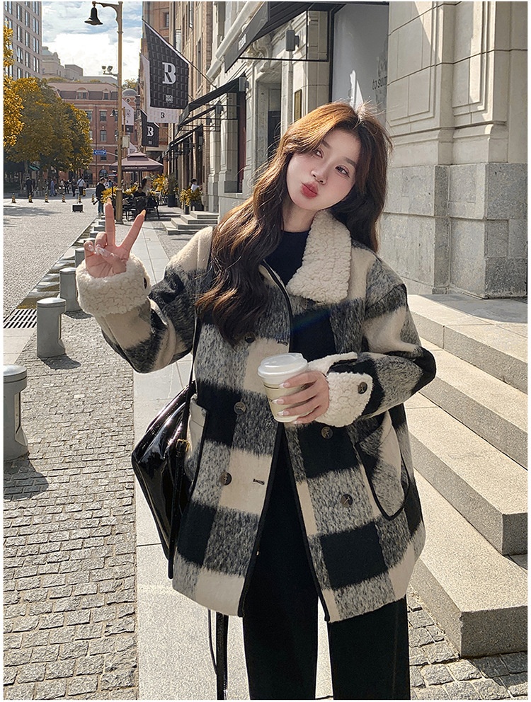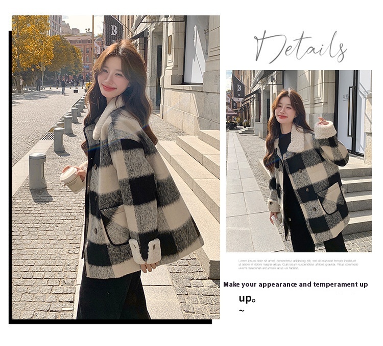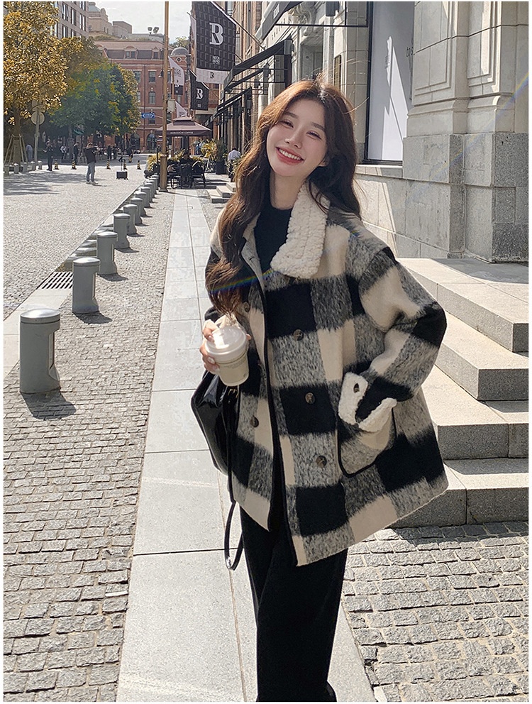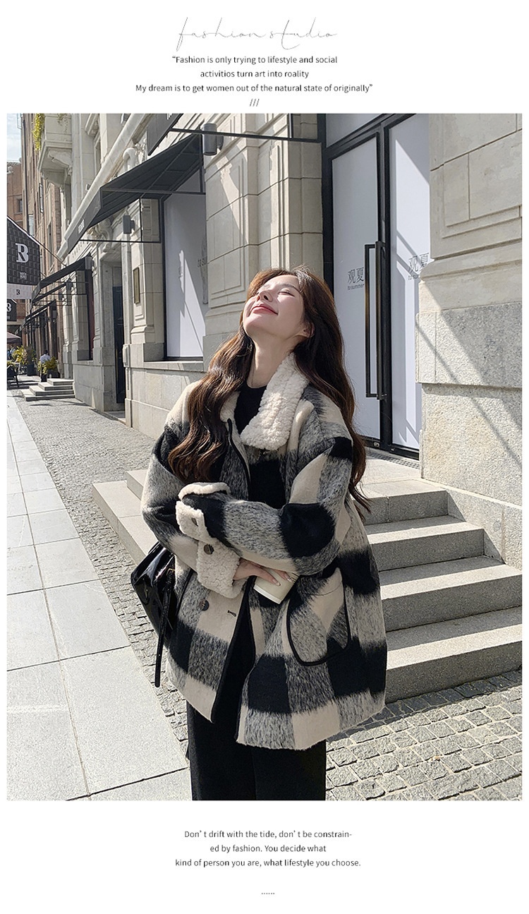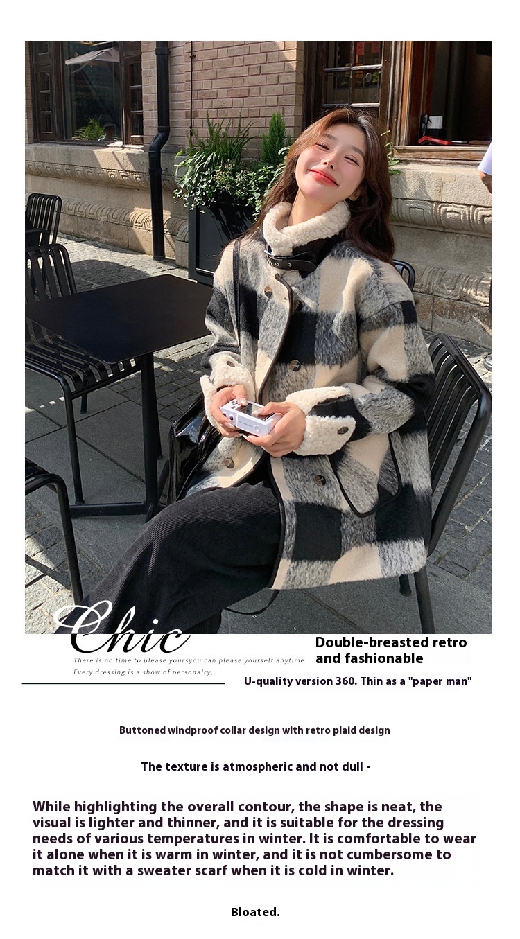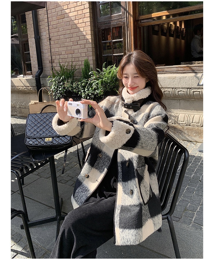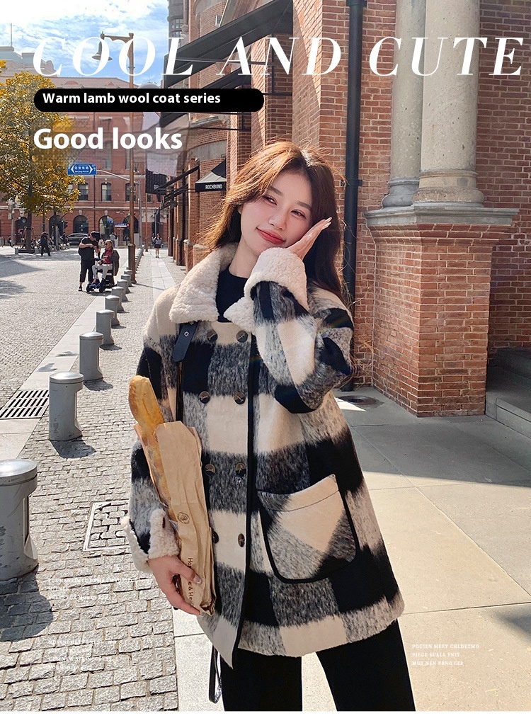 Black And White Lattice Pattern Lamb Wool Coat