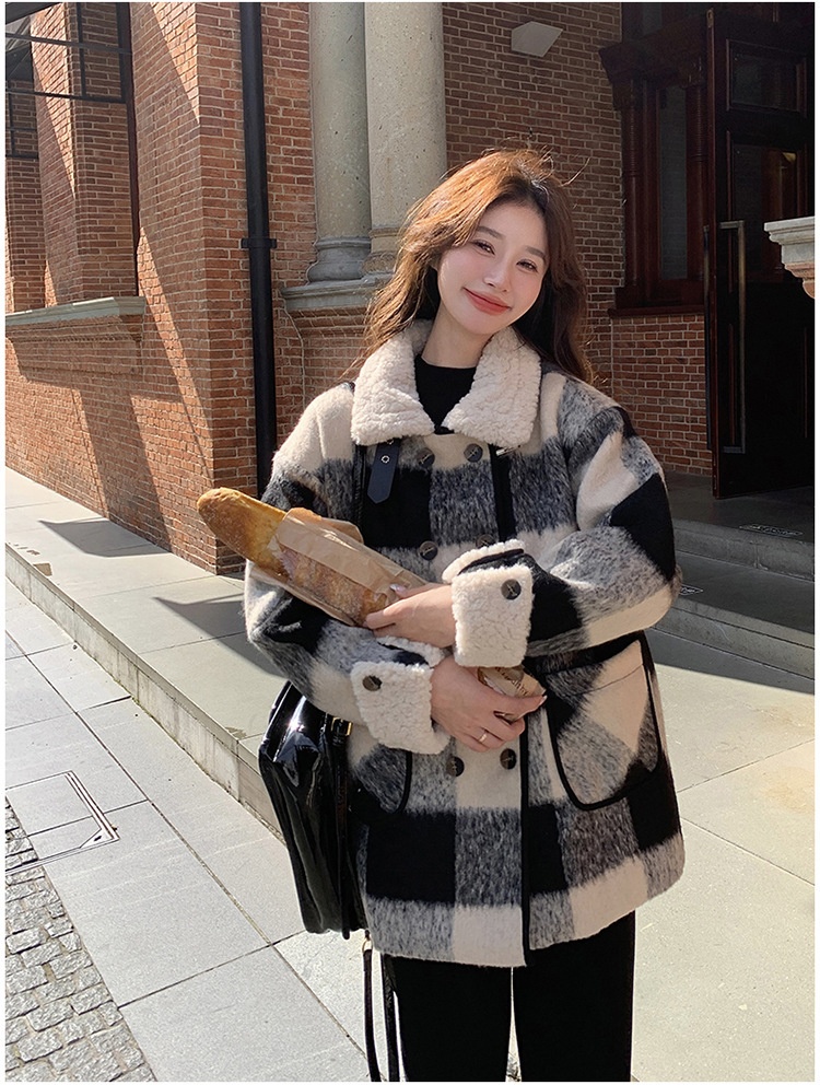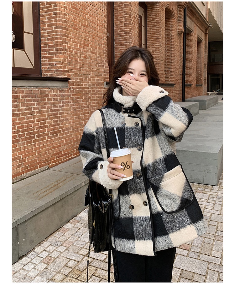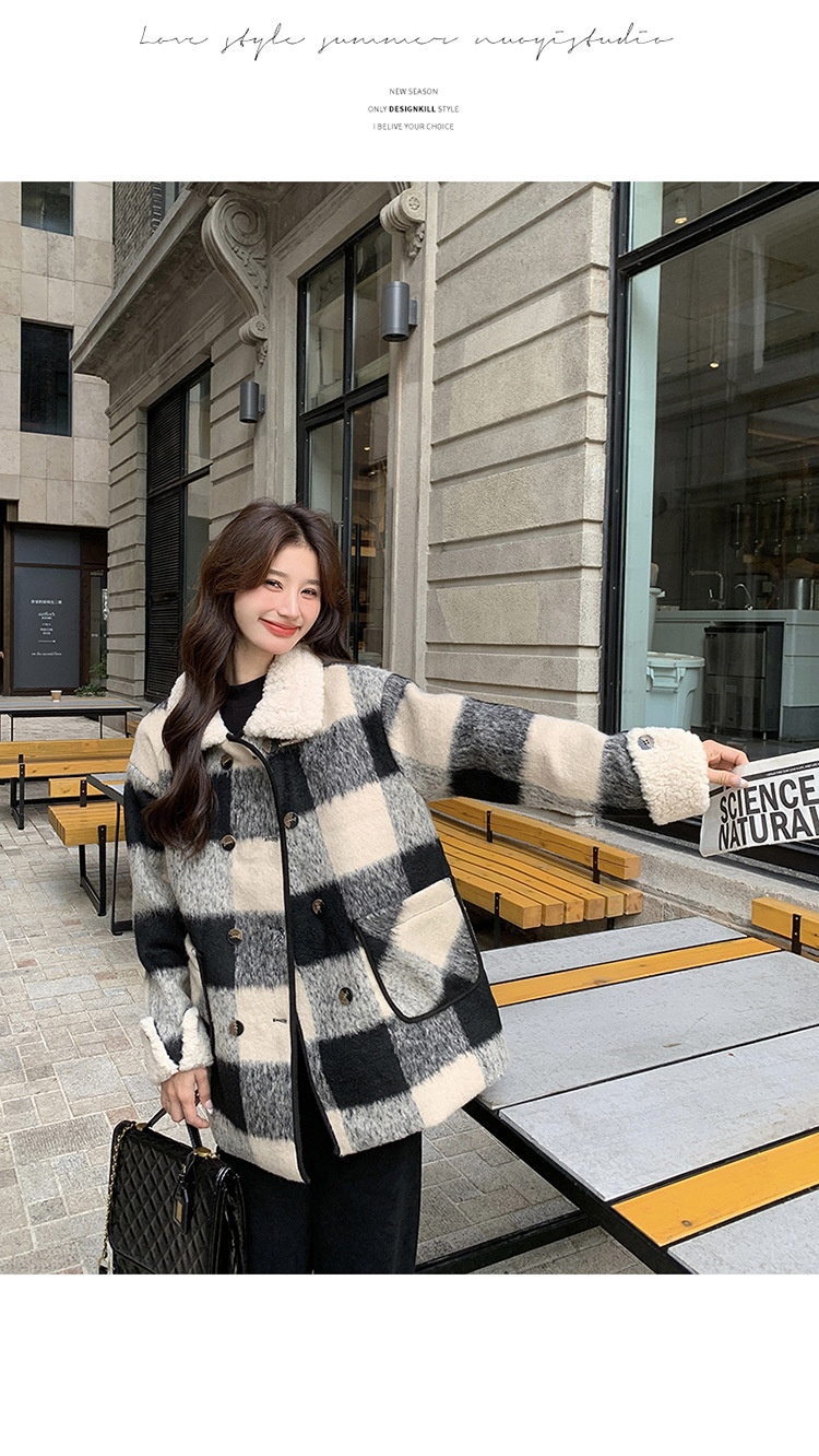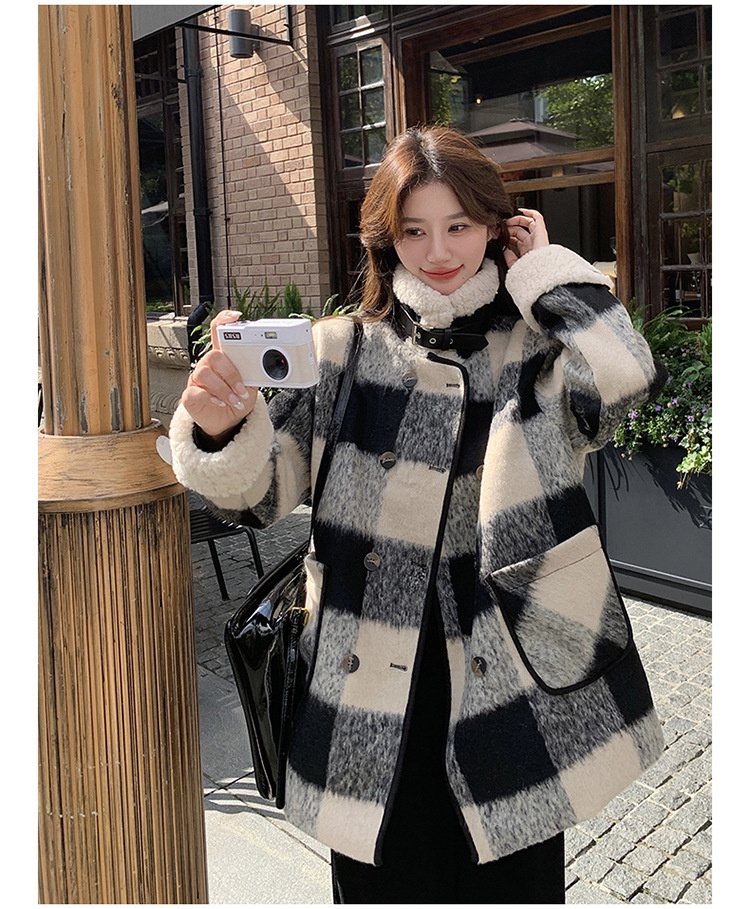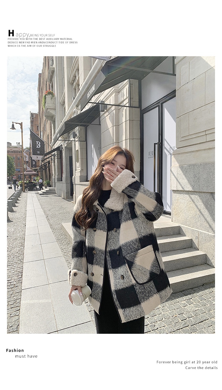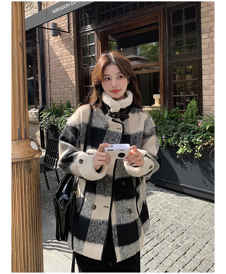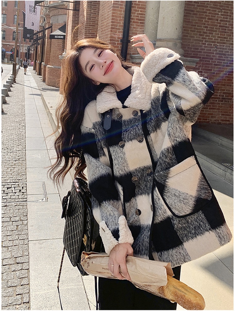 Black And White Lattice Pattern Lamb Wool Coat