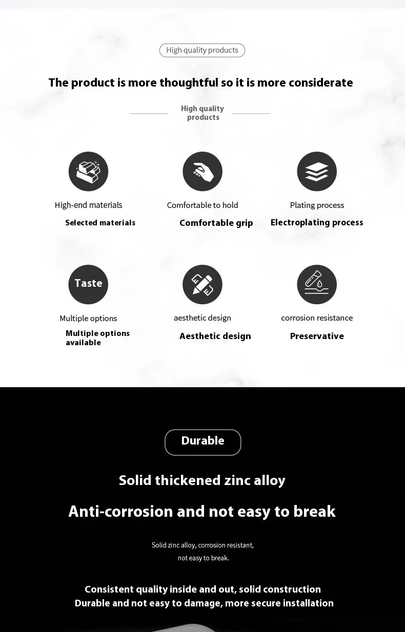 Made from solid aluminium alloy, stainless steel, or zinc alloy for durability and strength.