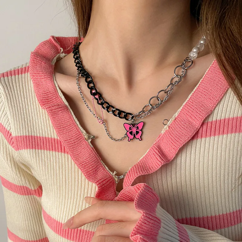 Color: pink butterfly pin necklace