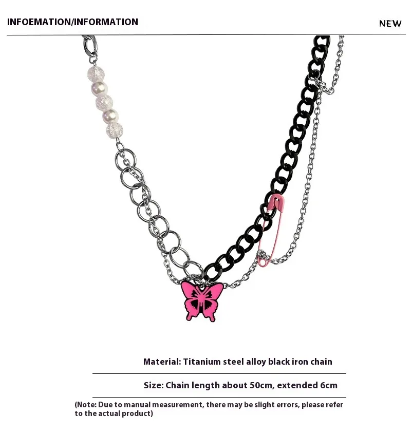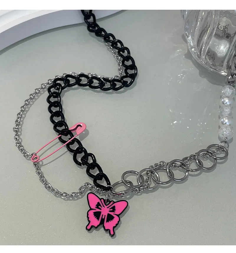 Black Chain Pin Butterfly Necklace