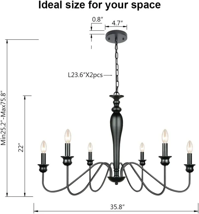 Its versatile black design ensures it complements various interior styles, from industrial to contemporary or traditional. With its durable construction and adjustable lighting, this chandelier is a reliable and stylish choice that will continue to impress for years.