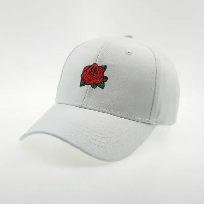 Black embroidered rose baseball cap