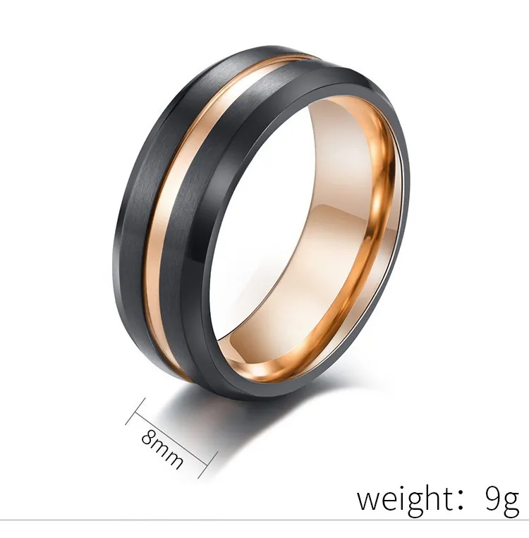 The black and rose gold combination creates a striking contrast, making this ring a standout accessory for both men and women. Its modern design suits a variety of styles, from casual to formal.