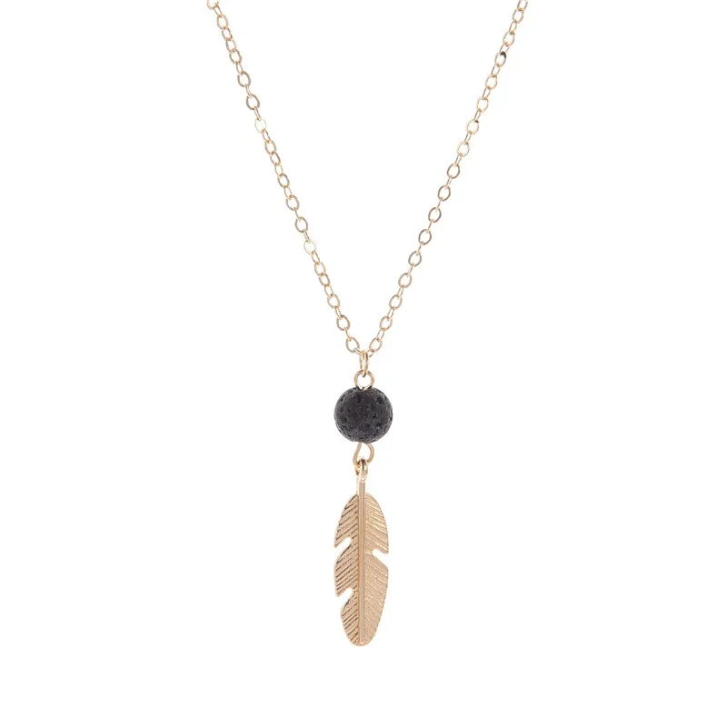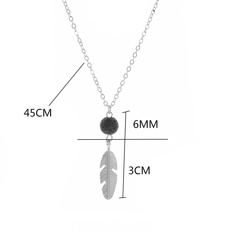 Black Round Bead Feather Pendant Necklace Item Jewelry Sweater Chain