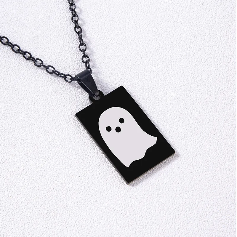 Black Stainless Steel Ghost Pendant Necklace