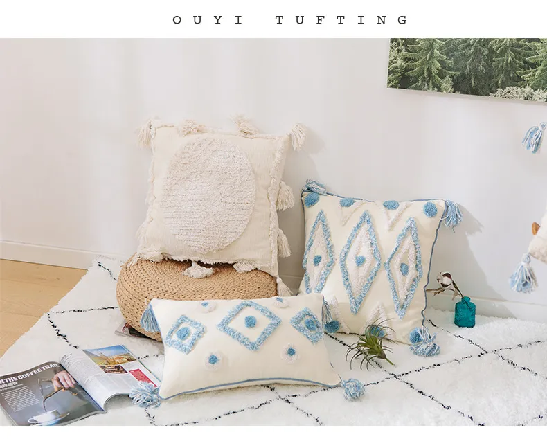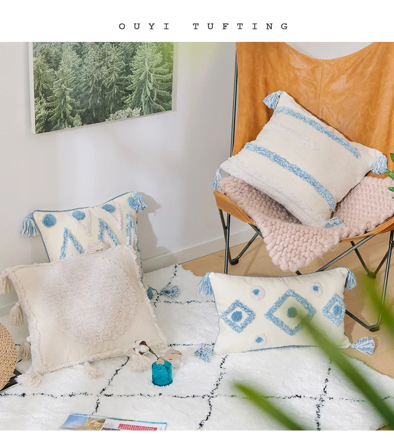 even outdoor spaces. They can be placed on sofas, chairs, beds, or outdoor seating areas to add a pop of color and extra comfort. Blue