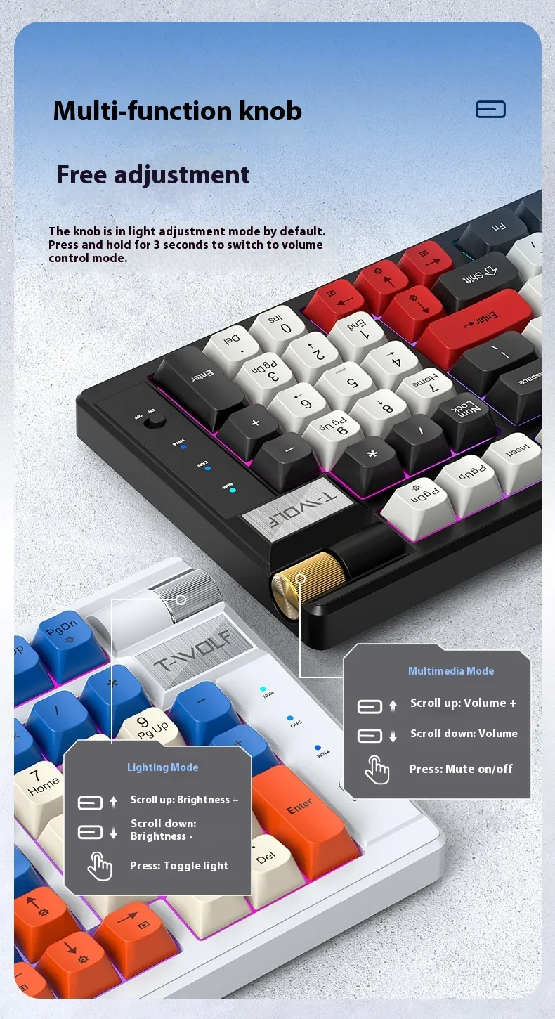 In conclusion, the Bluetooth Charging Gaming Mechanical Keyboard is an essential tool for anyone who values performance, comfort, and style. With its wireless Bluetooth connectivity, customizable mechanical switches, and RGB backlighting, this keyboard offers everything you need for an optimized gaming or typing experience. Its ergonomic design ensures comfort during long use, while the rechargeable battery provides the convenience of long-lasting power. Upgrade your setup today with this high-performance, Bluetooth-enabled mechanical keyboard.