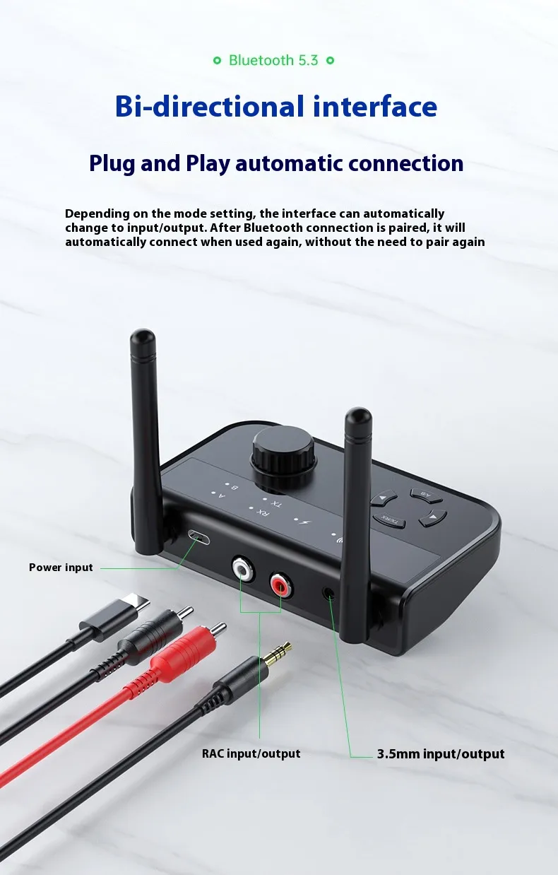 This device seamlessly functions as both a Bluetooth music receiver and a Bluetooth transmitter. As a receiver, it connects to your wired audio devices (such as speakers, headphones, or car audio systems) and enables them to receive audio wirelessly from your Bluetooth-enabled smartphone, tablet, or laptop. As a transmitter, it sends audio from a non-Bluetooth device, such as a TV, PC, or stereo, to Bluetooth headphones or speakers. This dual functionality makes it the perfect all-in-one solution for any audio setup.