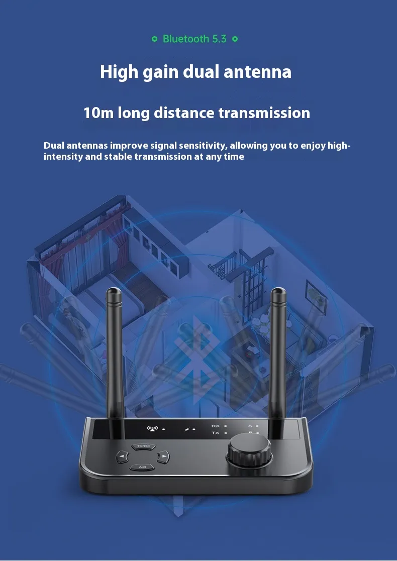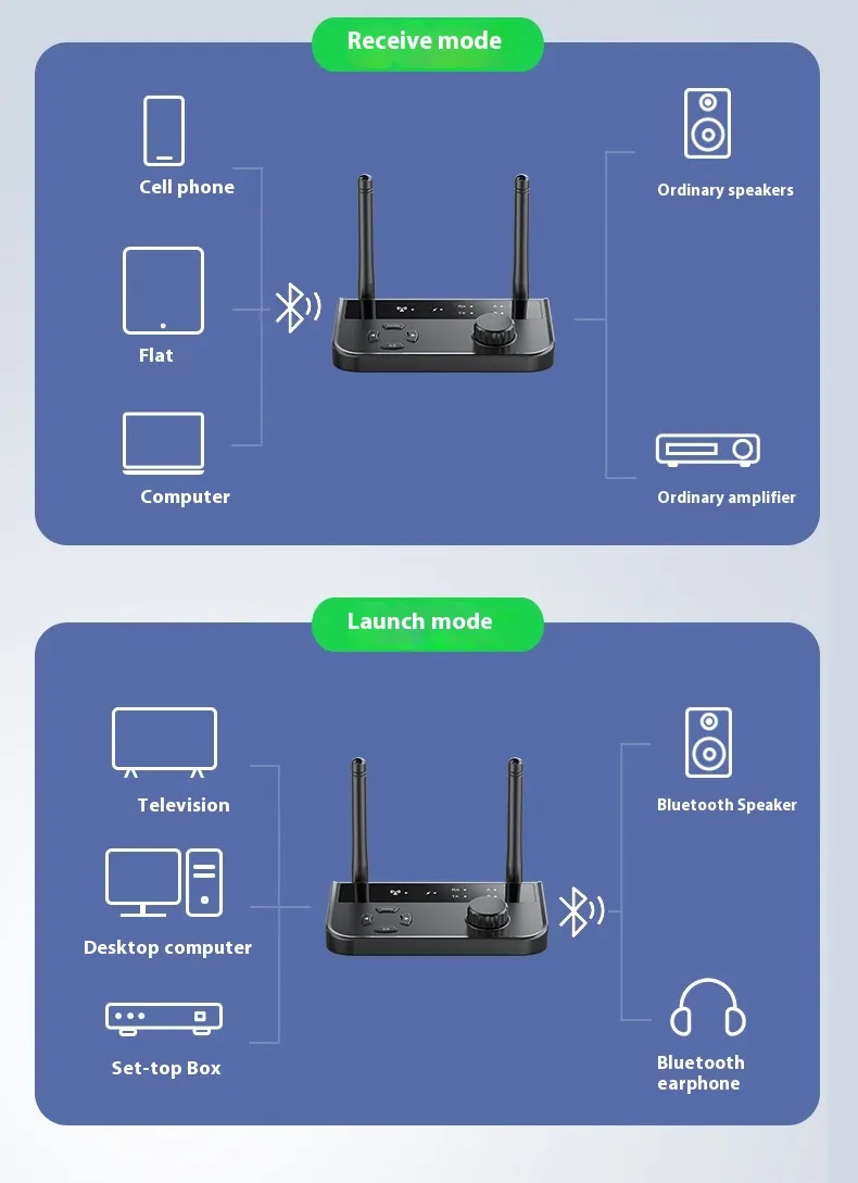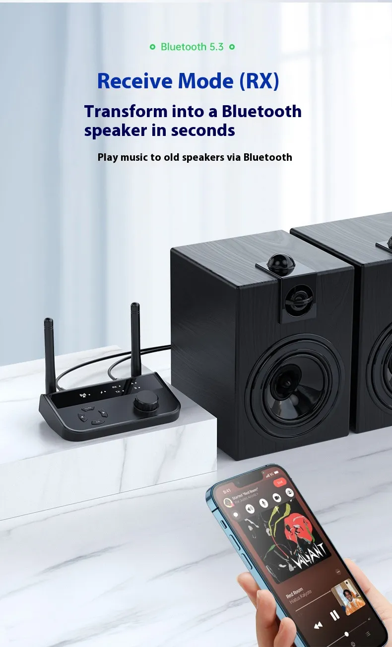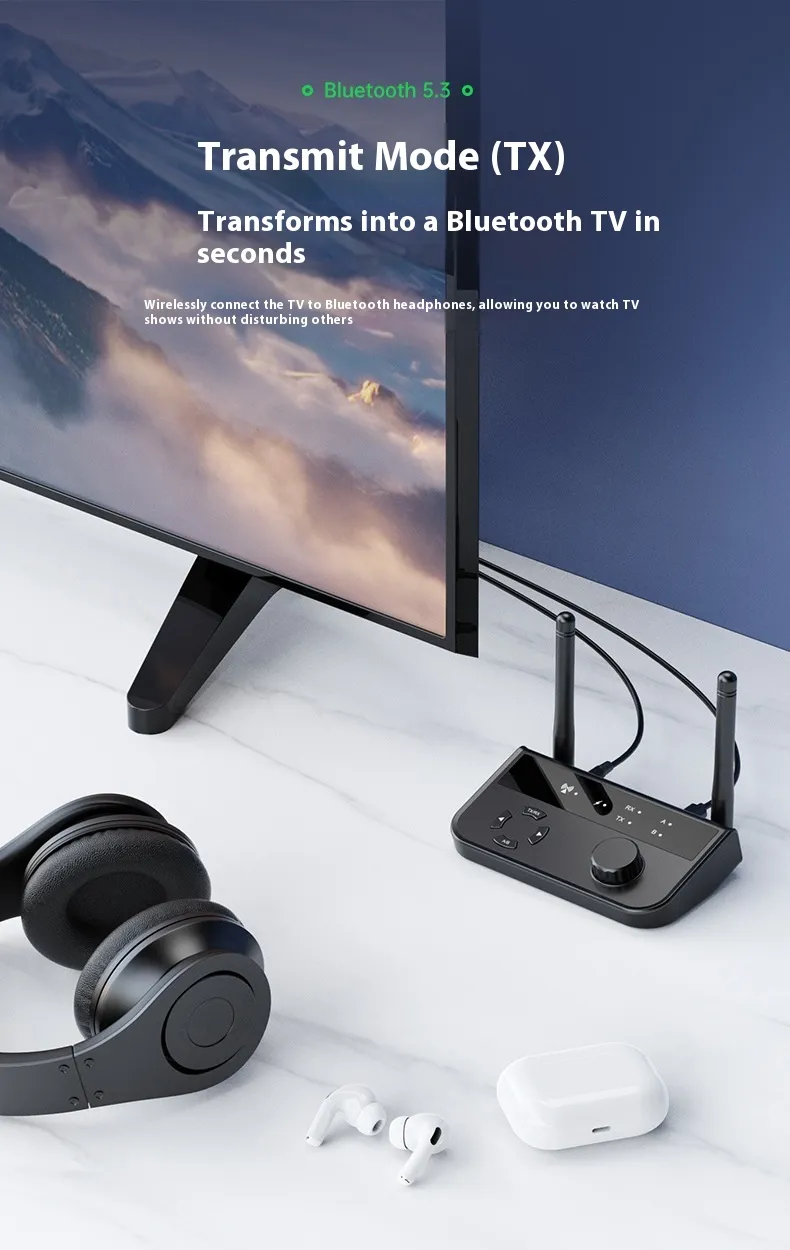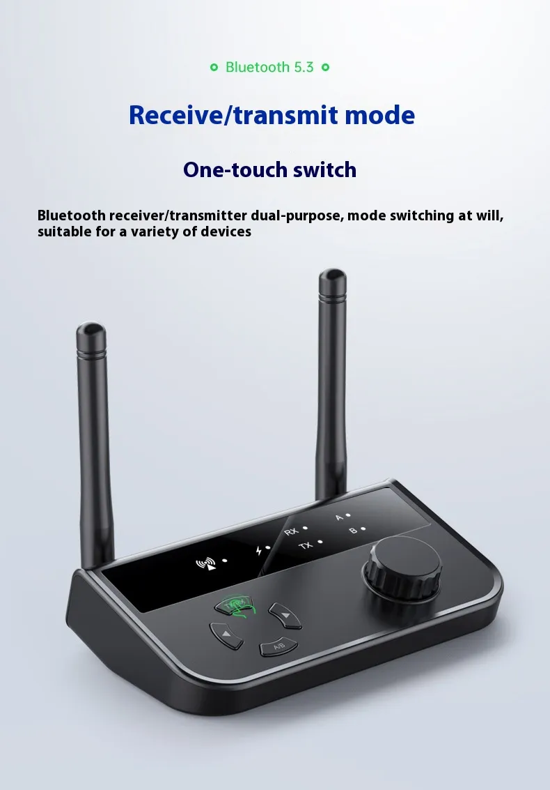 This device seamlessly functions as both a Bluetooth music receiver and a Bluetooth transmitter. As a receiver, it connects to your wired audio devices (such as speakers, headphones, or car audio systems) and enables them to receive audio wirelessly from your Bluetooth-enabled smartphone, tablet, or laptop. As a transmitter, it sends audio from a non-Bluetooth device, such as a TV, PC, or stereo, to Bluetooth headphones or speakers. This dual functionality makes it the perfect all-in-one solution for any audio setup.