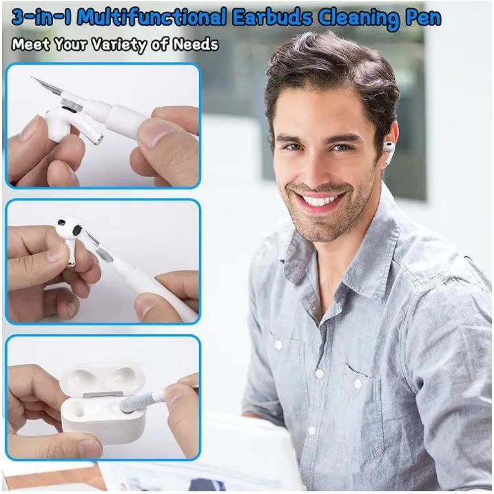 The Bluetooth Earbuds Cleaning Pen is a compact and practical tool designed to keep your wireless earbuds in top condition by removing dirt, dust, and earwax buildup. Keeping your earbuds clean ensures not only a better audio experience but also extends the life of the device. With its easy-to-use design and effective cleaning mechanism, this cleaning pen is the perfect solution for maintaining your Bluetooth earbuds, keeping them looking and functioning like new. Whether you're a frequent traveler, gym-goer, or daily user, this cleaning pen is an essential accessory for ensuring the hygiene and performance of your earbuds.