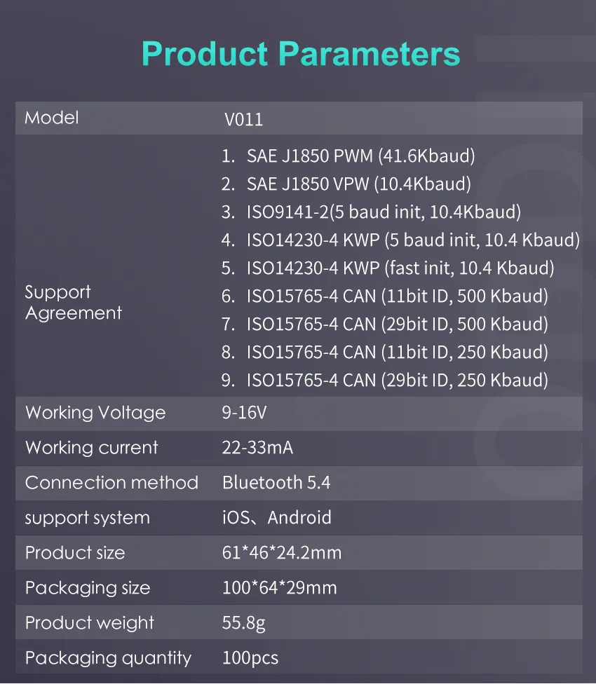 - Multi-Protocol Support: Includes all major OBD-II protocols, such as CAN, ISO9141, KWP2000, and J1850 VPW/PWM.