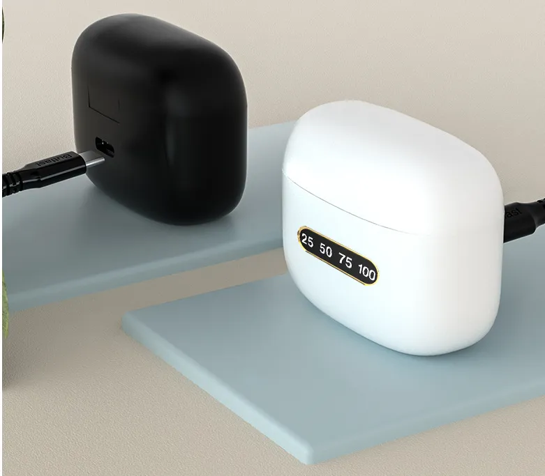 2.250mAh charging case can full charge 2 earphones around 5 times, offer more 24 Hours music time