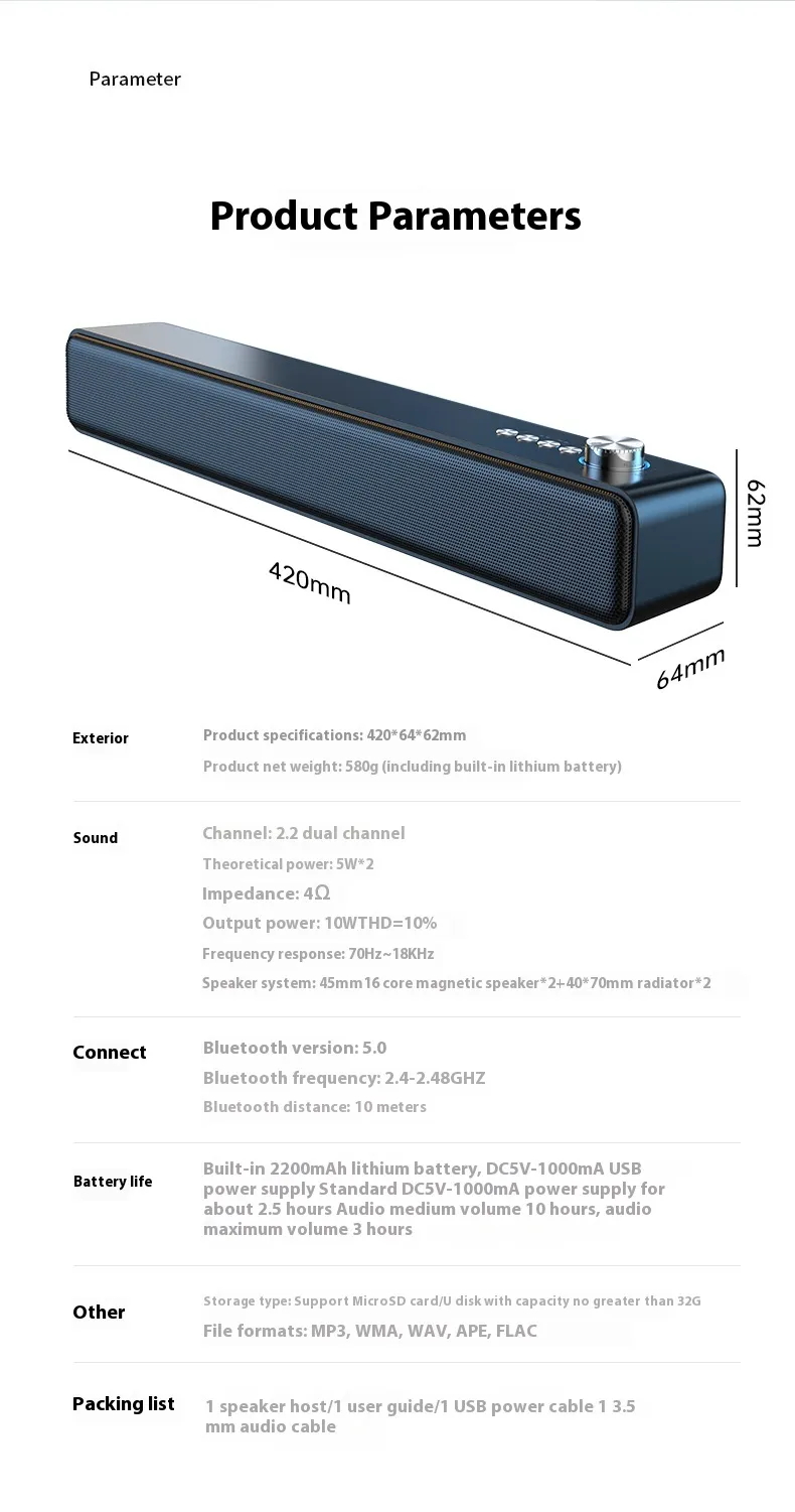 - AUX & USB Inputs: Connect non-Bluetooth devices via 3.5mm audio jack or USB port.