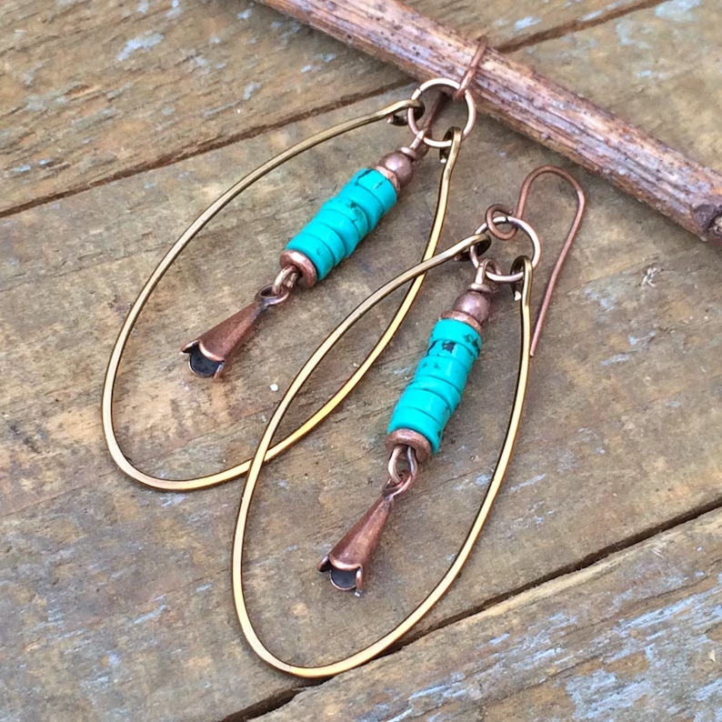 These earrings combine bohemian style with vintage aesthetics, showcasing carefully inlaid turquoise beads and pendant details. Lightweight and eye-catching, they are perfect for casual outings, festivals, or special occasions where you want to make a stylish statement.