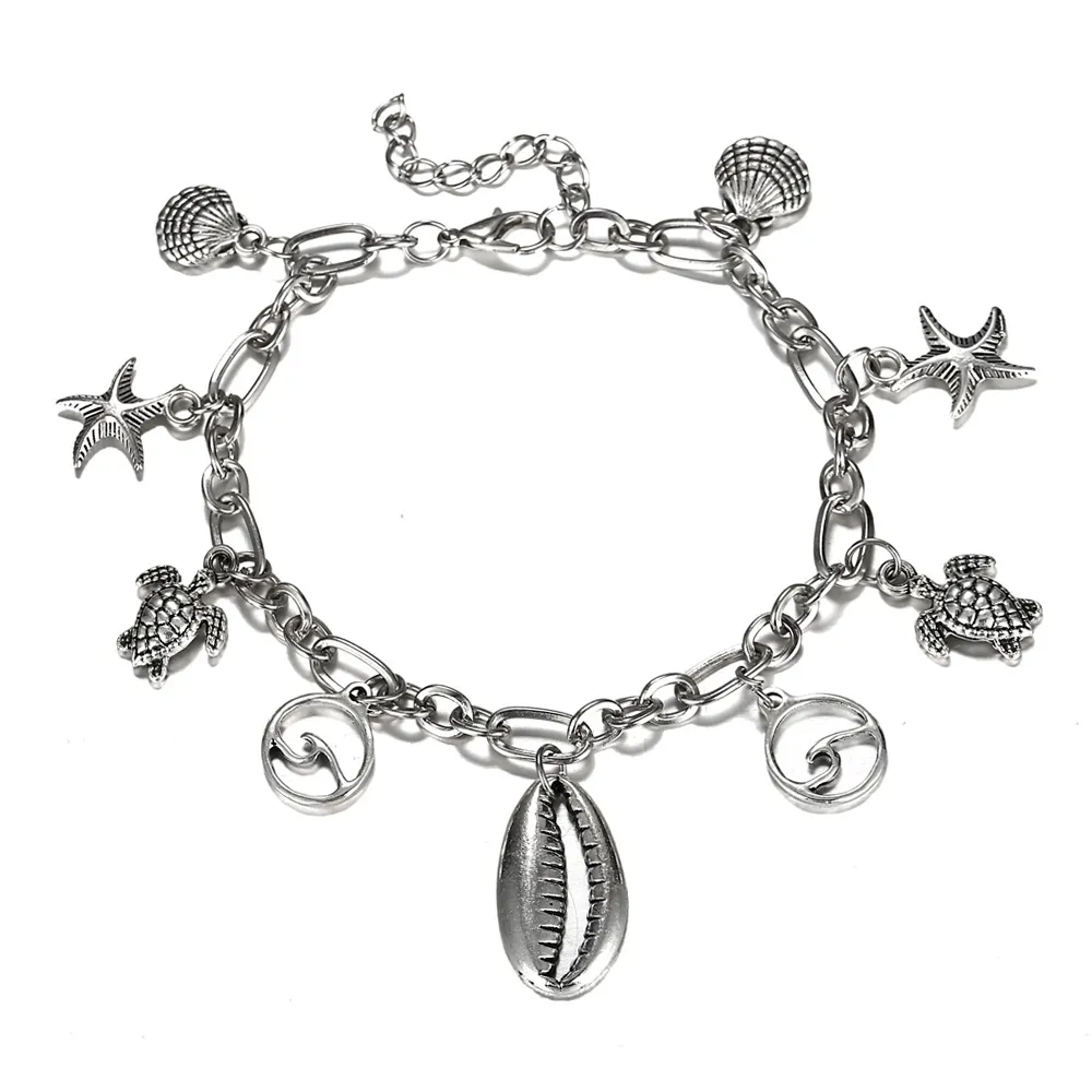 Boho Wave Turtle Pendant Anklet Bracelets For Women Shell Anklet Bracelets On The Leg Bohemian Foot Ocean Jewelry