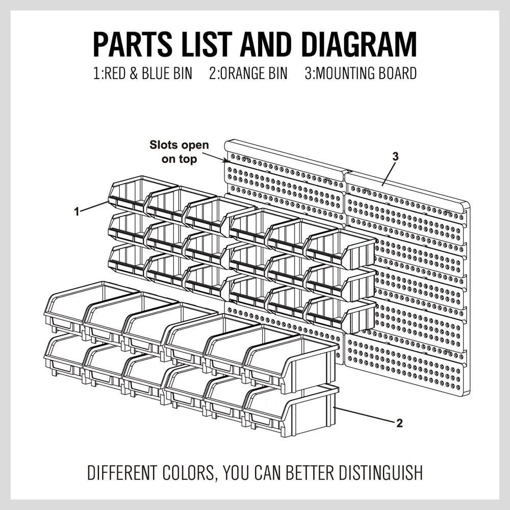 Wall-mounted bins are excellent space savers. They attach to walls or pegboards, freeing up work surfaces and keeping hardware within easy reach.