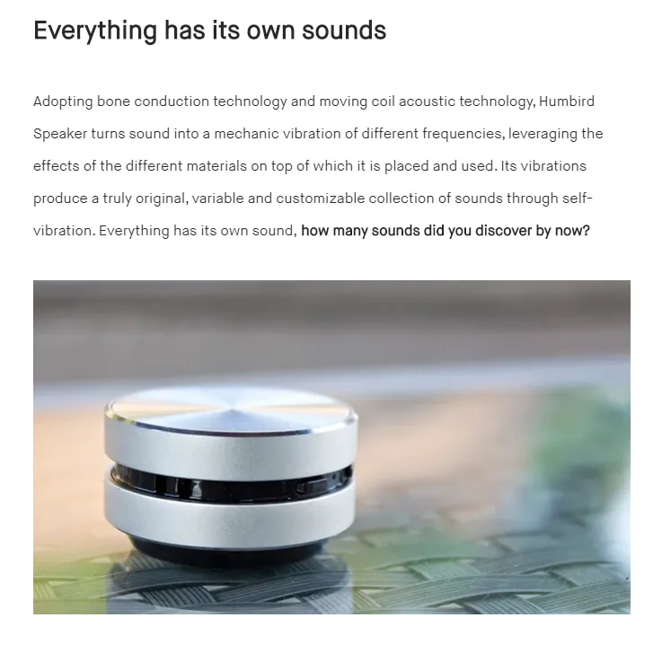 1. Humbird Speaker is the world’s smallest and most versatile bone conduction speaker that allows you to