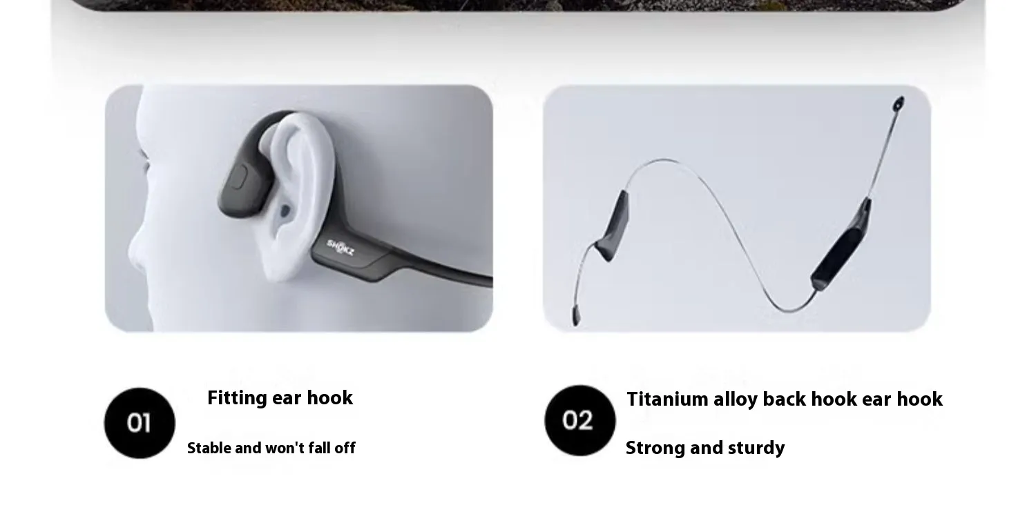 The ergonomic design of the Bone Conduction Wireless Motion Bluetooth-compatible Earphones ensures a comfortable and secure fit, even during intense physical activity. The earphones rest comfortably on your temples, providing a secure hold without pressing on your ears. This makes them perfect for extended wear, and the lightweight design ensures that you barely notice they’re there while you move.