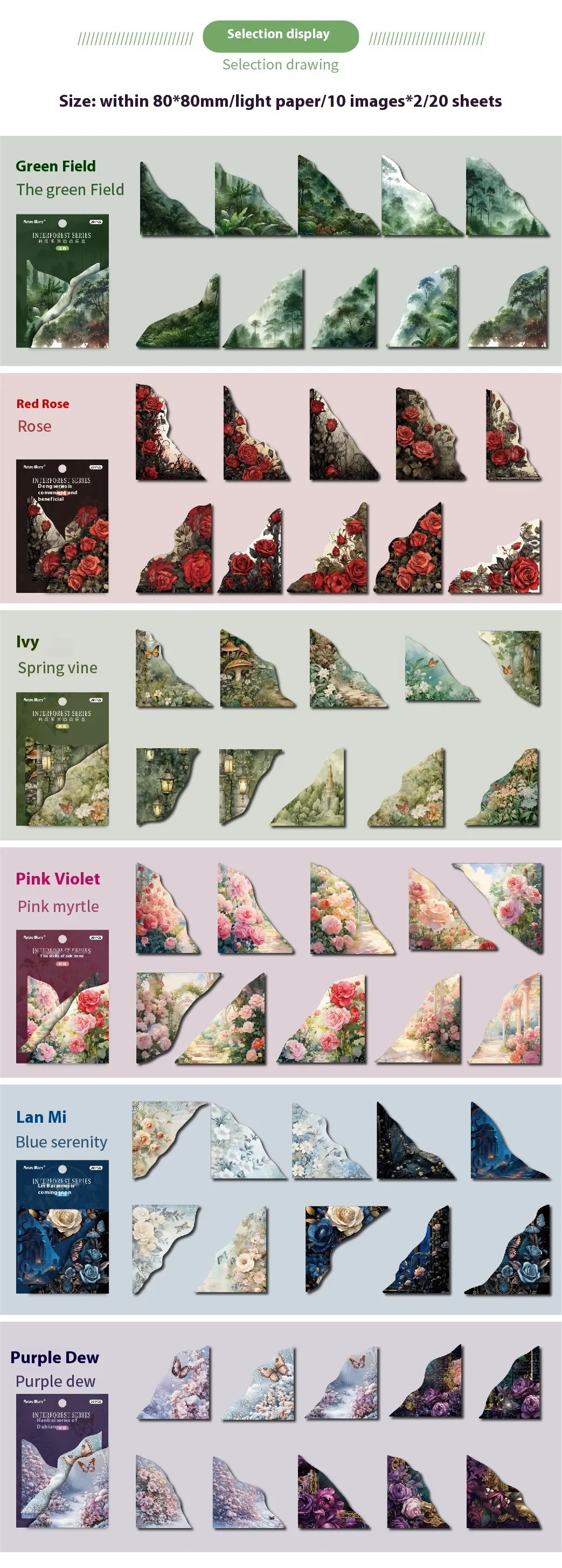 Color: Spring Vine, pink plum, red rose, blue, green wild, purple Dew