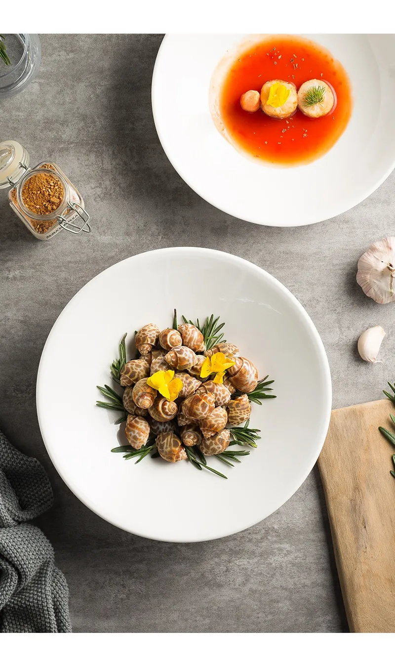 bowl-bright white, 12-inch feet rain-hat shaped bowl-bright white, 7.5-inch deep plates-bright white, 9-inch deep plates-bright white,