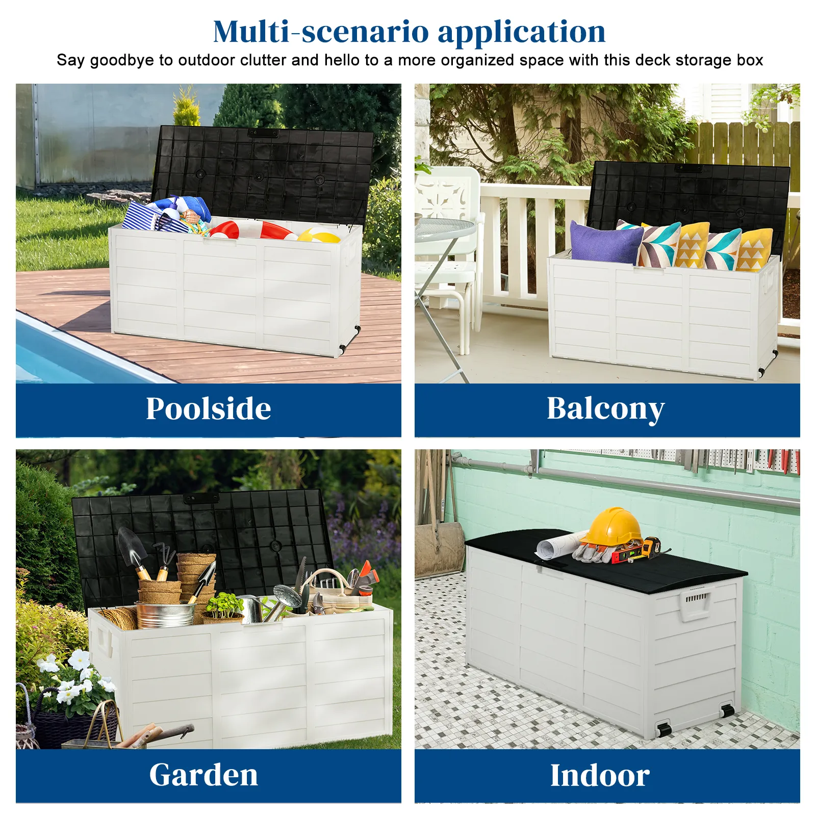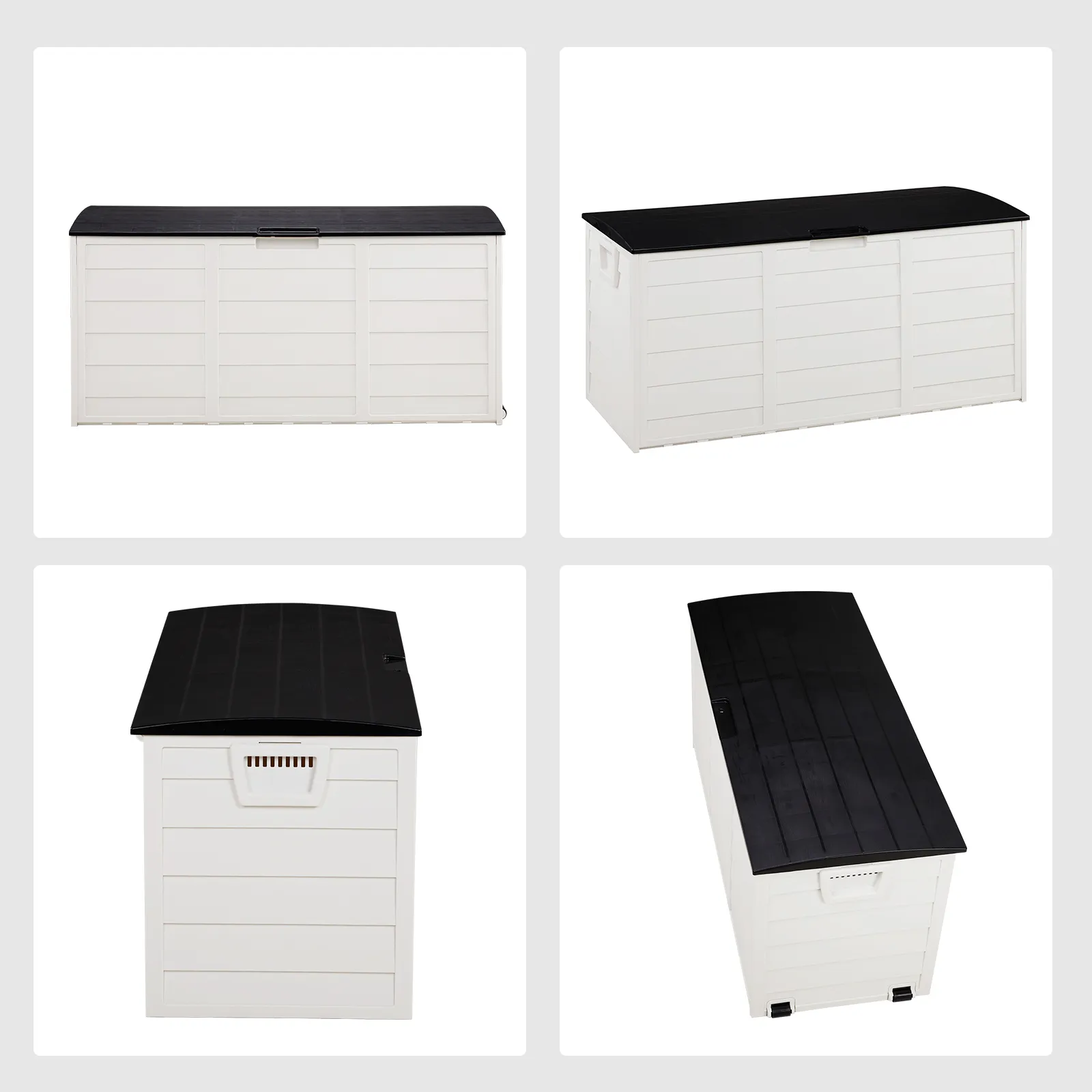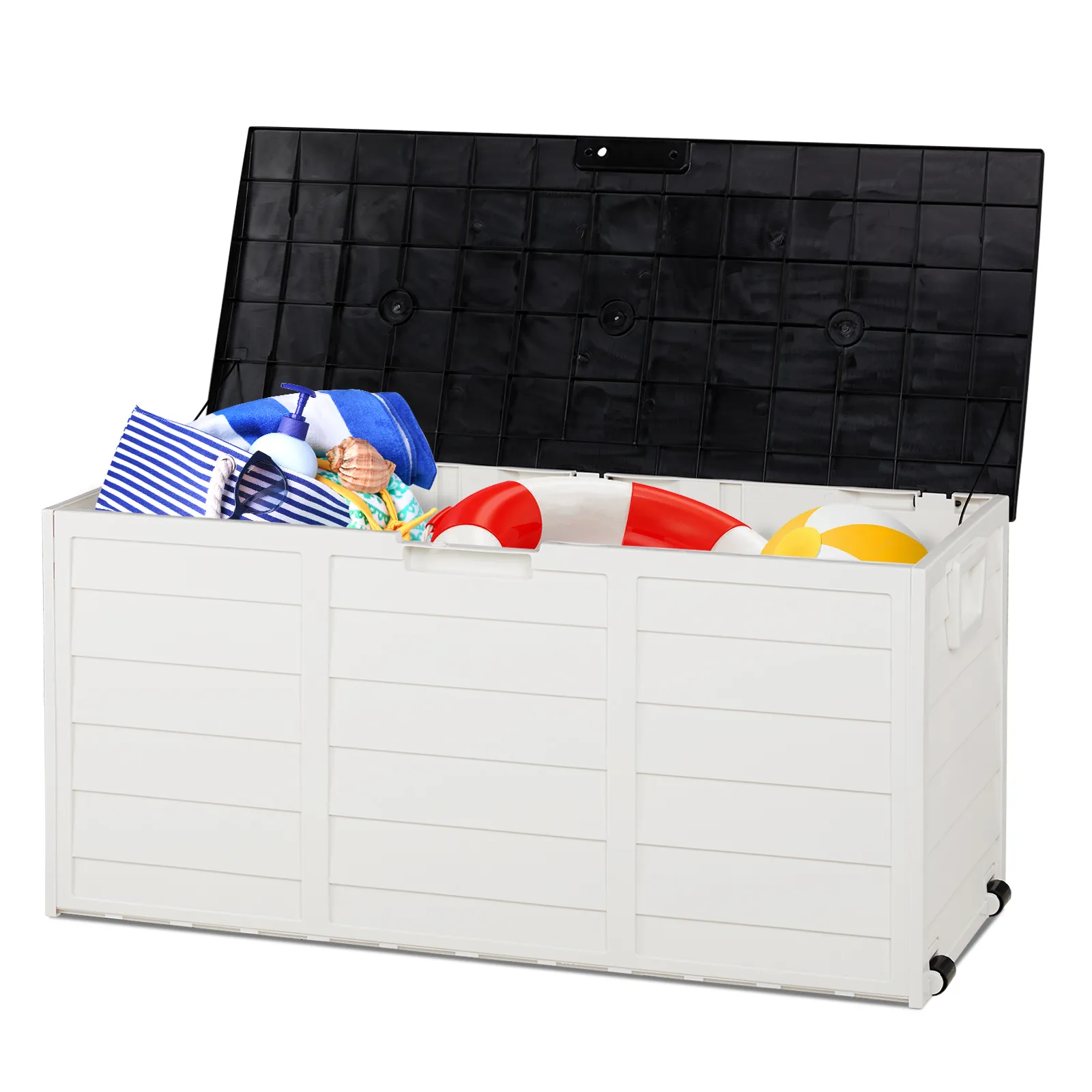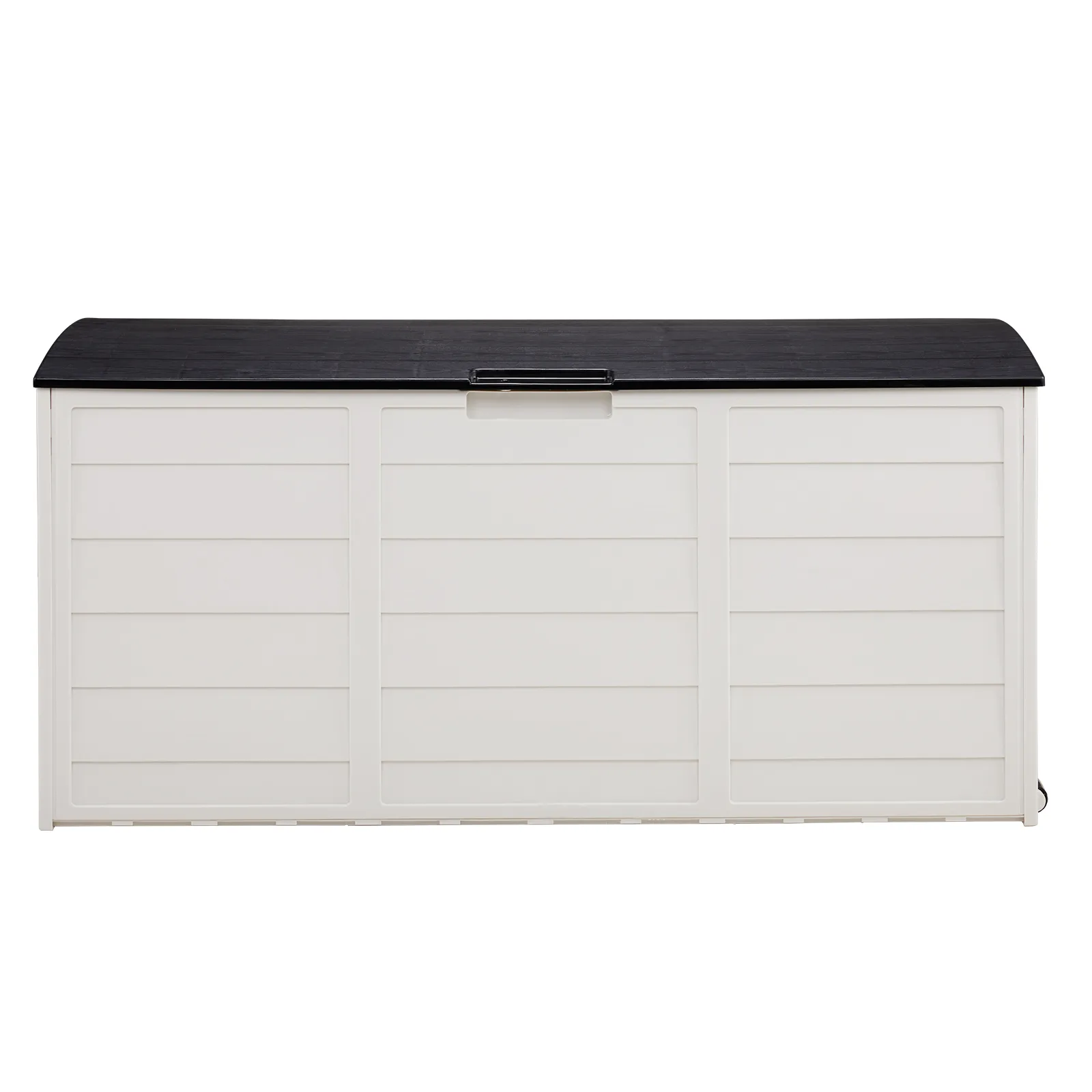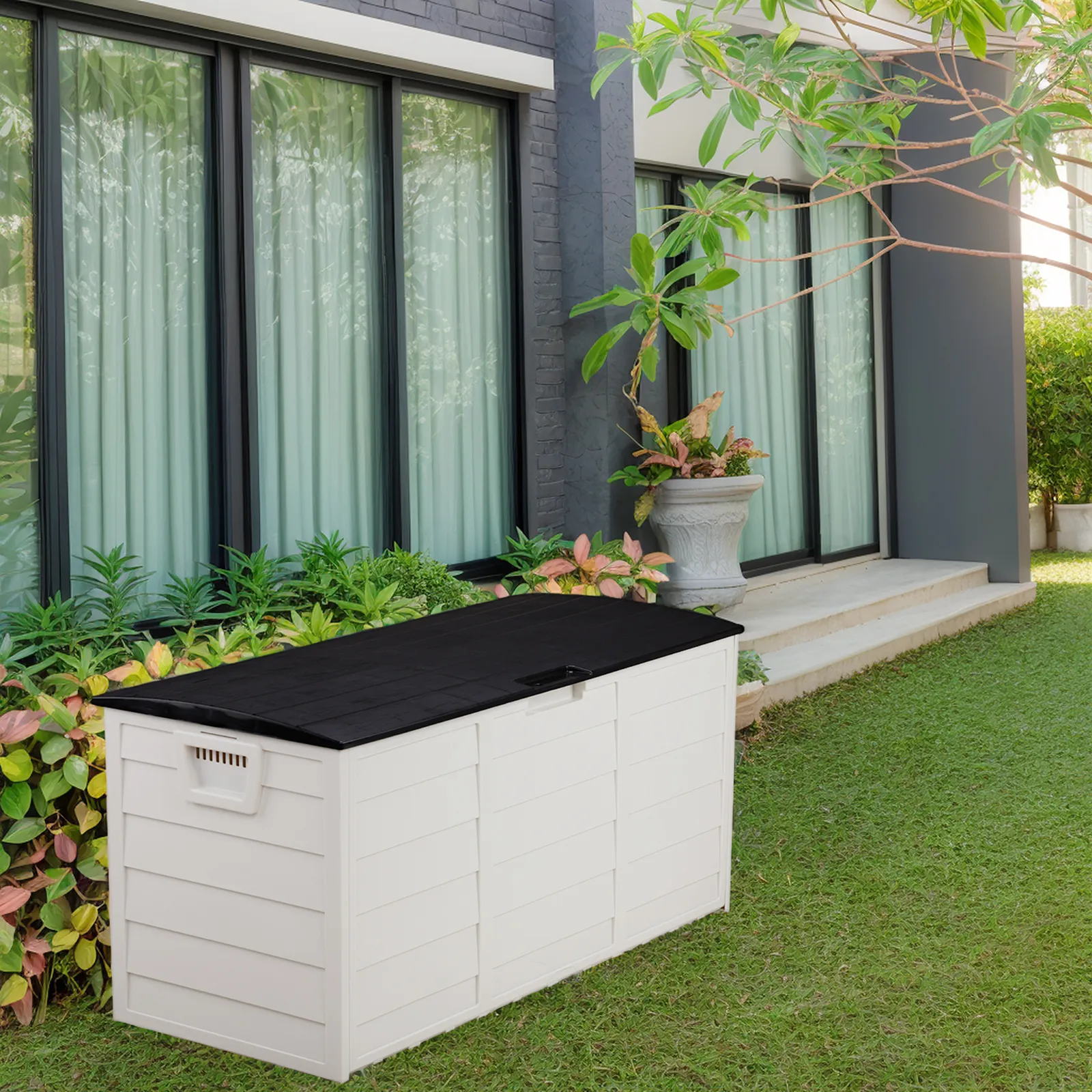 1. 280L Garden Storage Box With Wheels - Formed in hard wearing and durable plastic which is weatherproof, and UV resistant, with a slatted