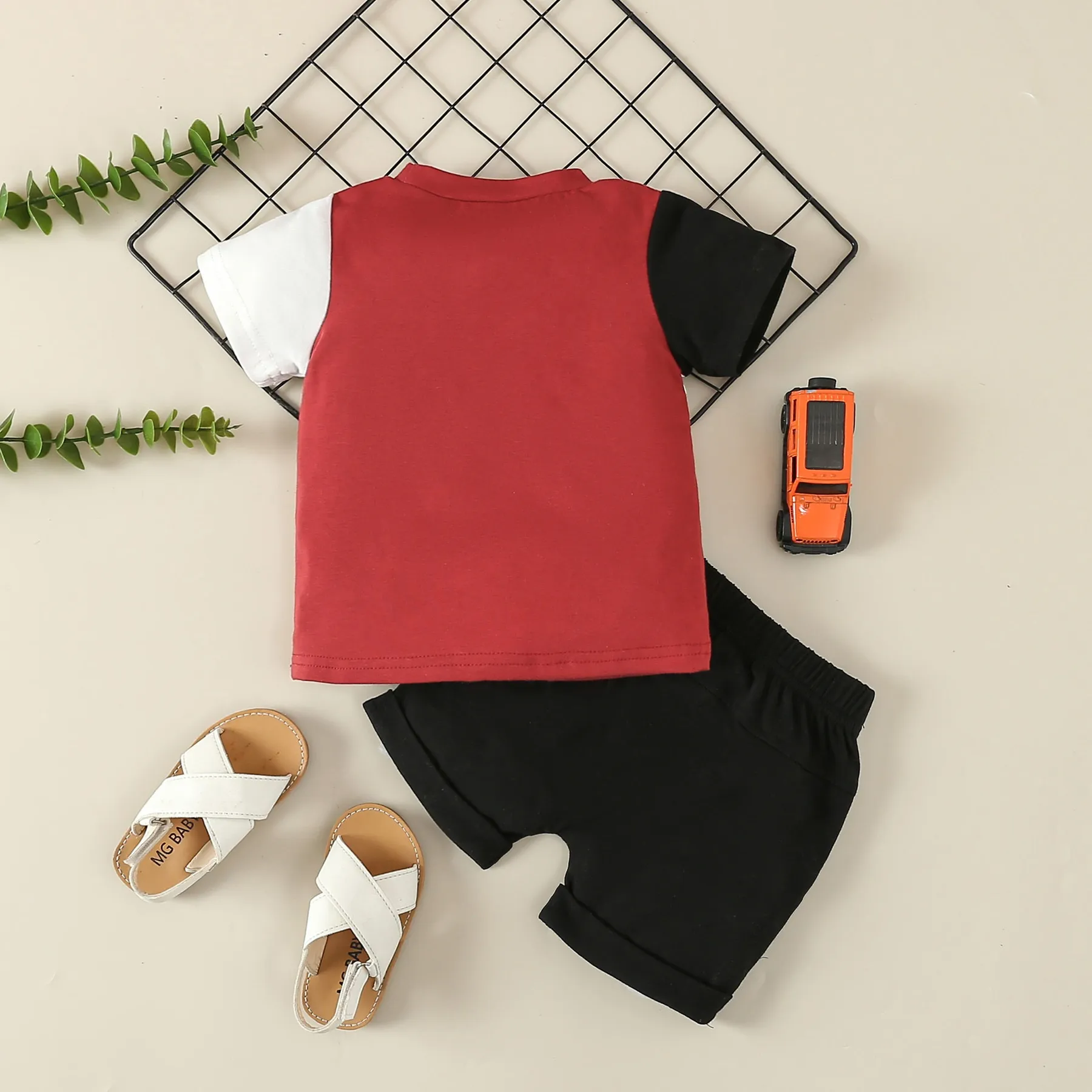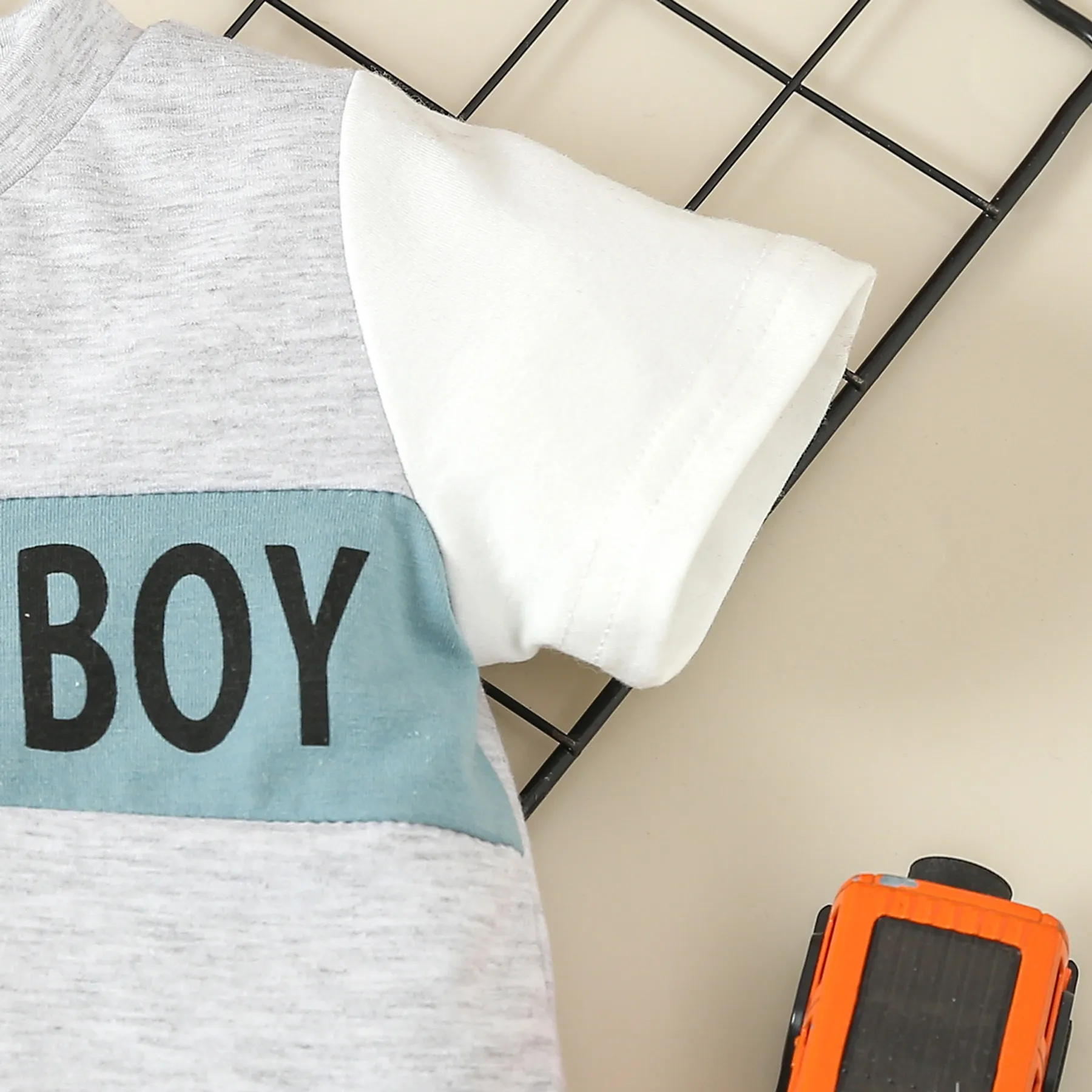 Boys' Casual Sports Suit Color Matching Short-sleeved Letter T-shirt Shorts Two-piece Set
