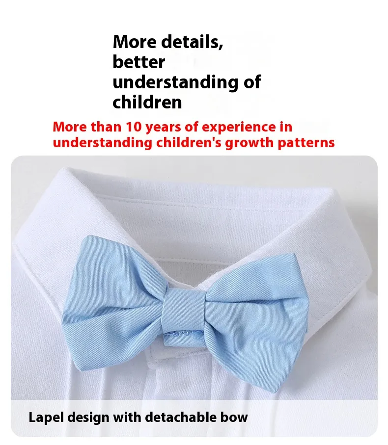 Crafted from high-quality materials, the Boys' Gentleman Two-piece Clothing offers both style and practicality. Whether it’s for a wedding, birthday party, or a holiday gathering, this outfit provides the perfect blend of charm, style, and functionality for your little one.