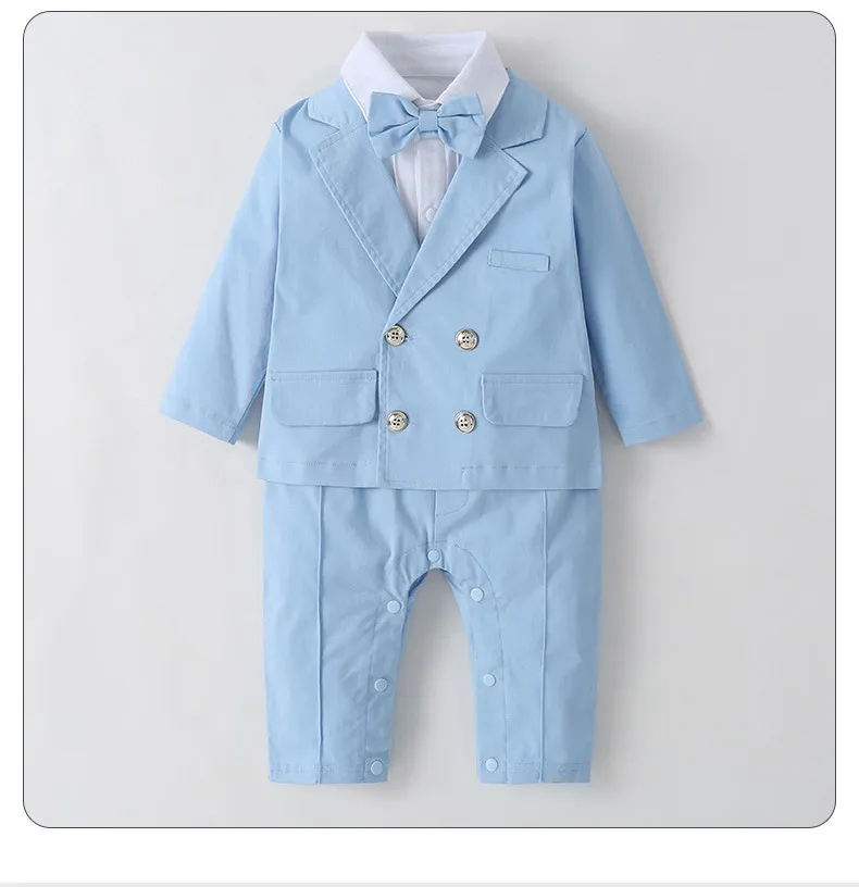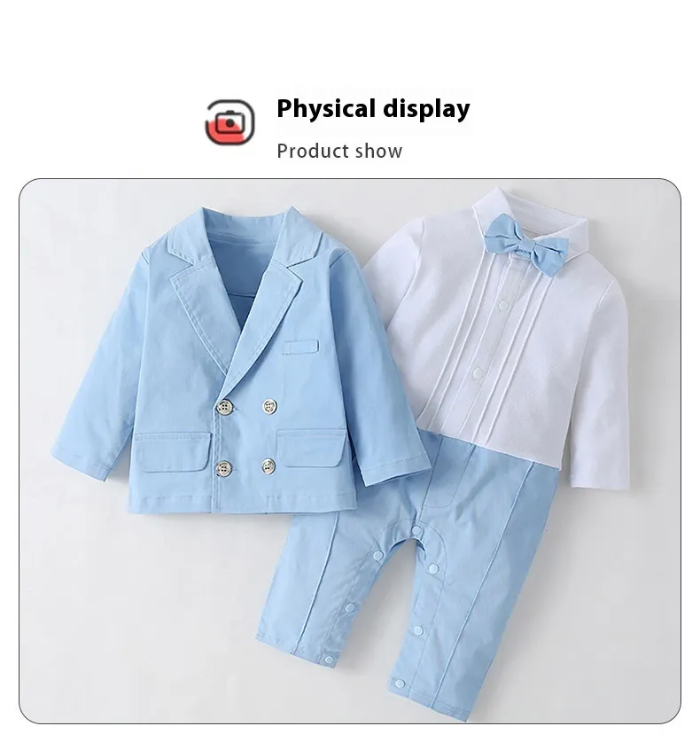 The Boys' Gentleman Two-piece Clothing is designed for convenience and ease. The jacket is easy to slip on and off, with simple button closures that are perfect for little hands. The trousers feature an elastic waistband or adjustable fit, making them easy to wear and comfortable throughout the day. This outfit allows your child to look sharp while ensuring that parents have no trouble dressing or undressing them.