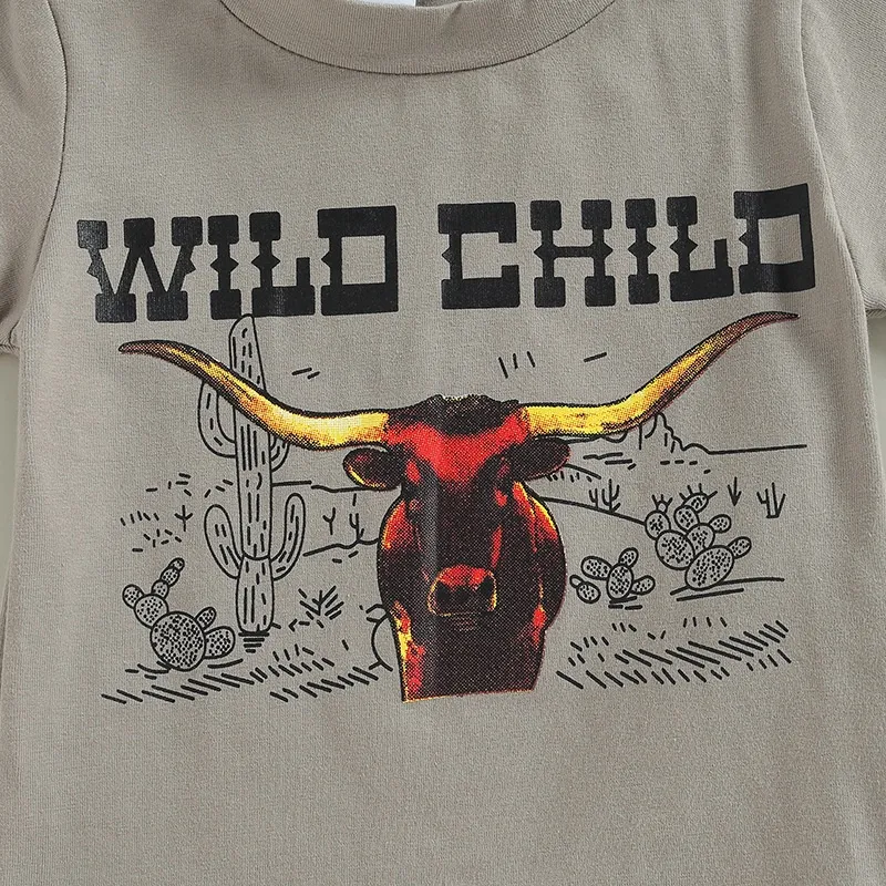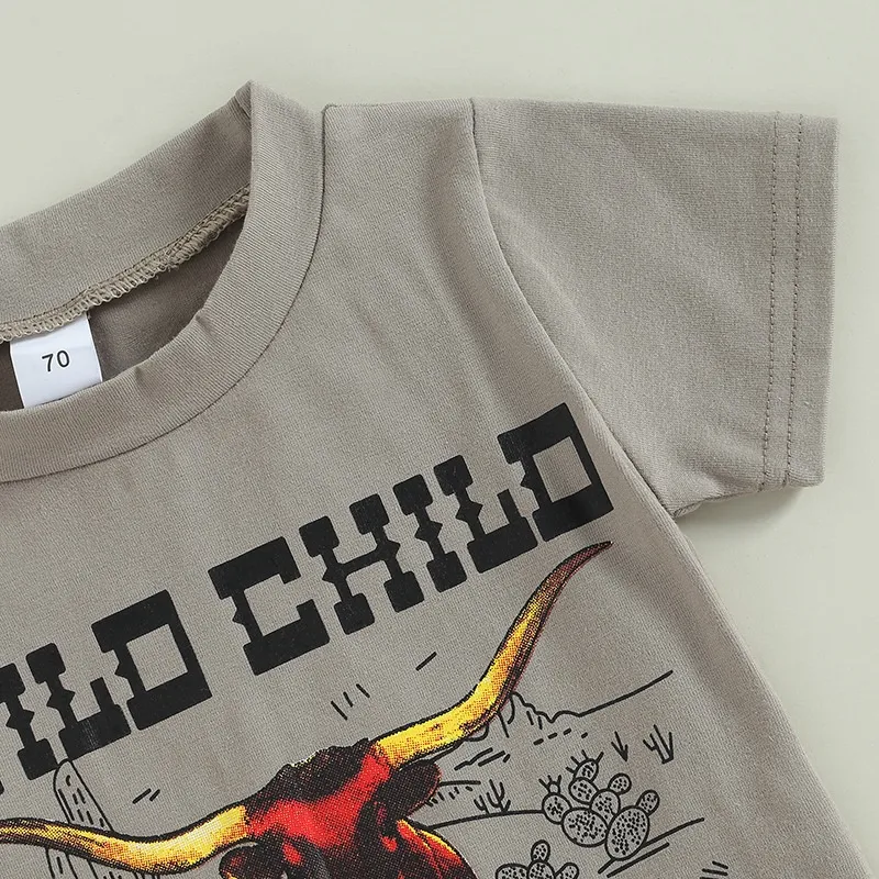 Boy's Short-Sleeved T-shirt and Bell-Bottom Pants Suit: Trendy, Comfortable, and Stylish