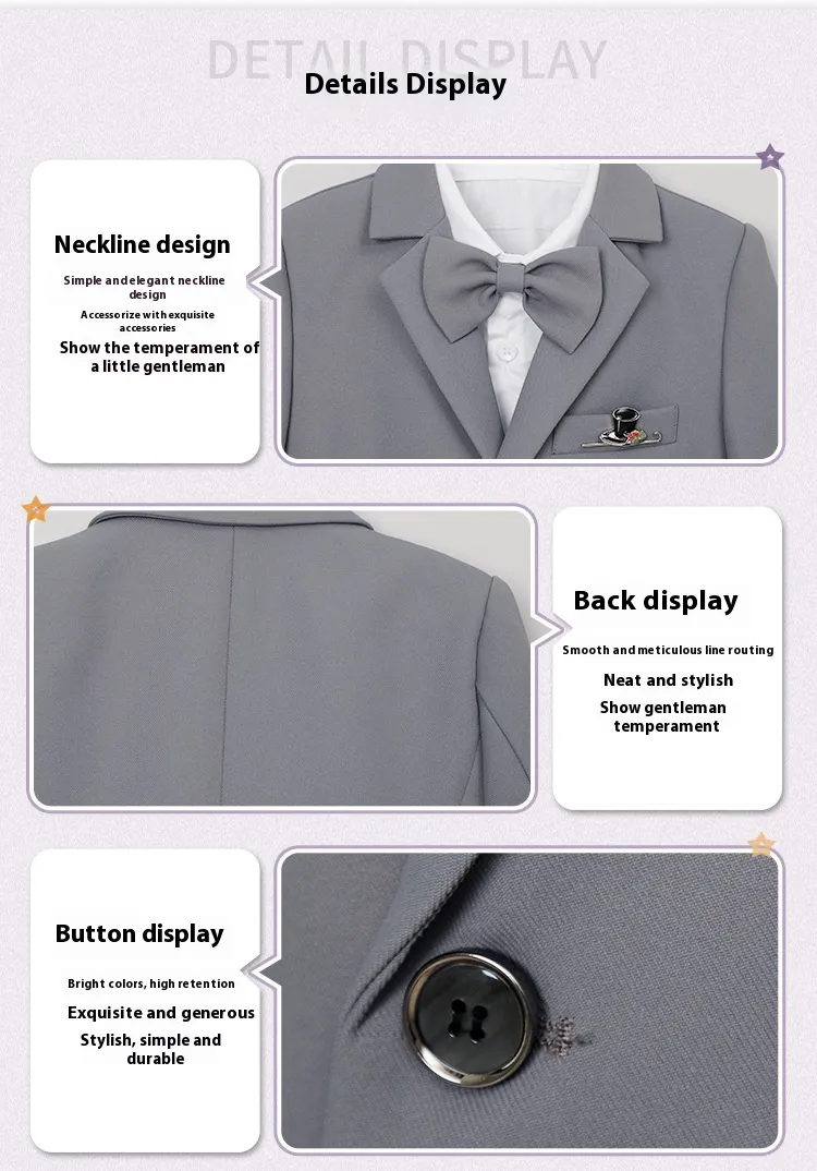 The Boy’s Suit Dress British Solid Color is the perfect blend of timeless British style and youthful elegance, designed for special occasions, formal events, or family gatherings. Made with attention to detail and crafted from premium materials, this suit offers a sophisticated, sharp look that will have your young gentleman looking his best. Whether it's a wedding, school event, or birthday party, this solid color suit ensures he stands out with a confident, polished appearance.