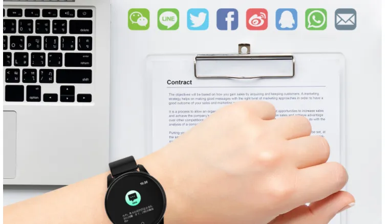 Function: multi-sports mode tracking, heart rate/blood pressure monitoring, phone information reminder,