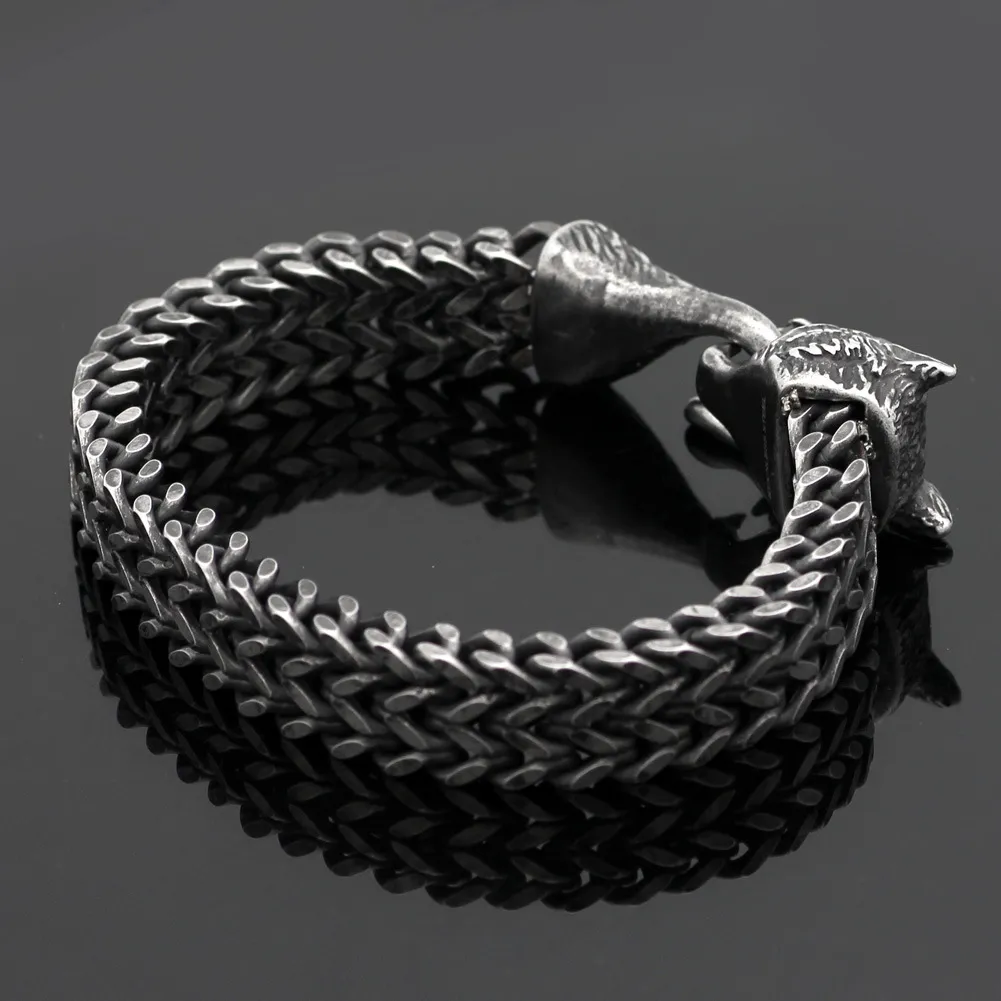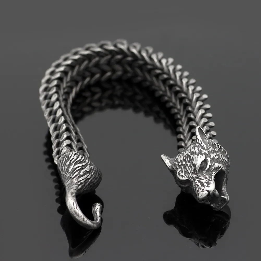 Bracelet Men Stainless Steel Vintage Black Wolf Head Cuban Chain Hand Wristband Male Fashion Jewelry Wholesale Accessories Gifts