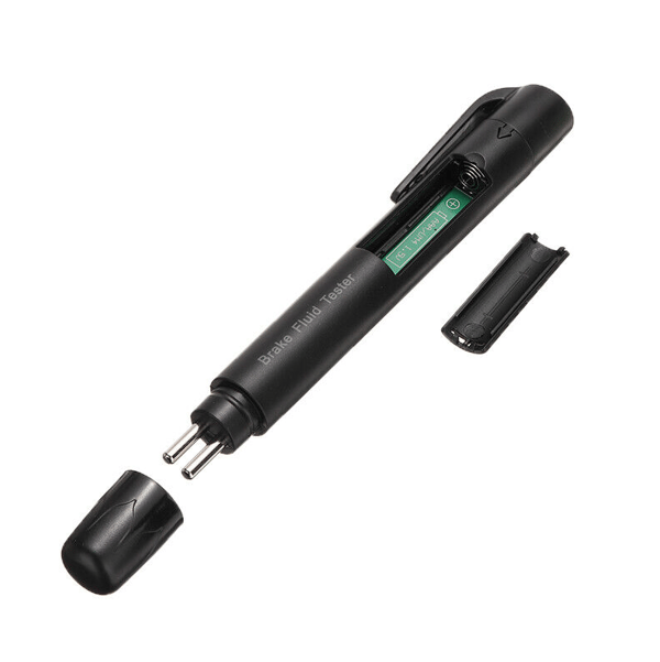Unscrew the brake fluid reservoir and pull off the cap of the brake fluid tester then dip the test probes into the brake fluid until up to the plastic rim of the device.