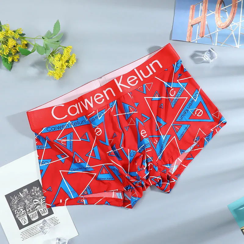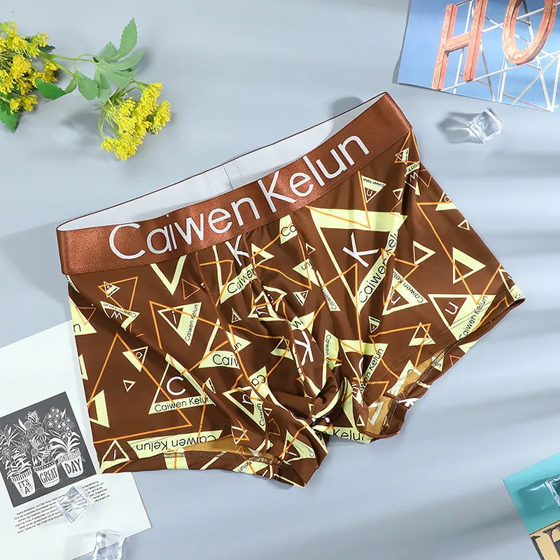 Brand Men's Ice Silk Soft Comfortable Print Fashion Youngth Large Size Boxer Underwear