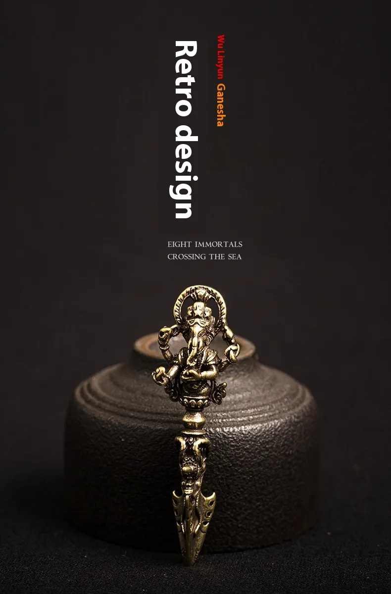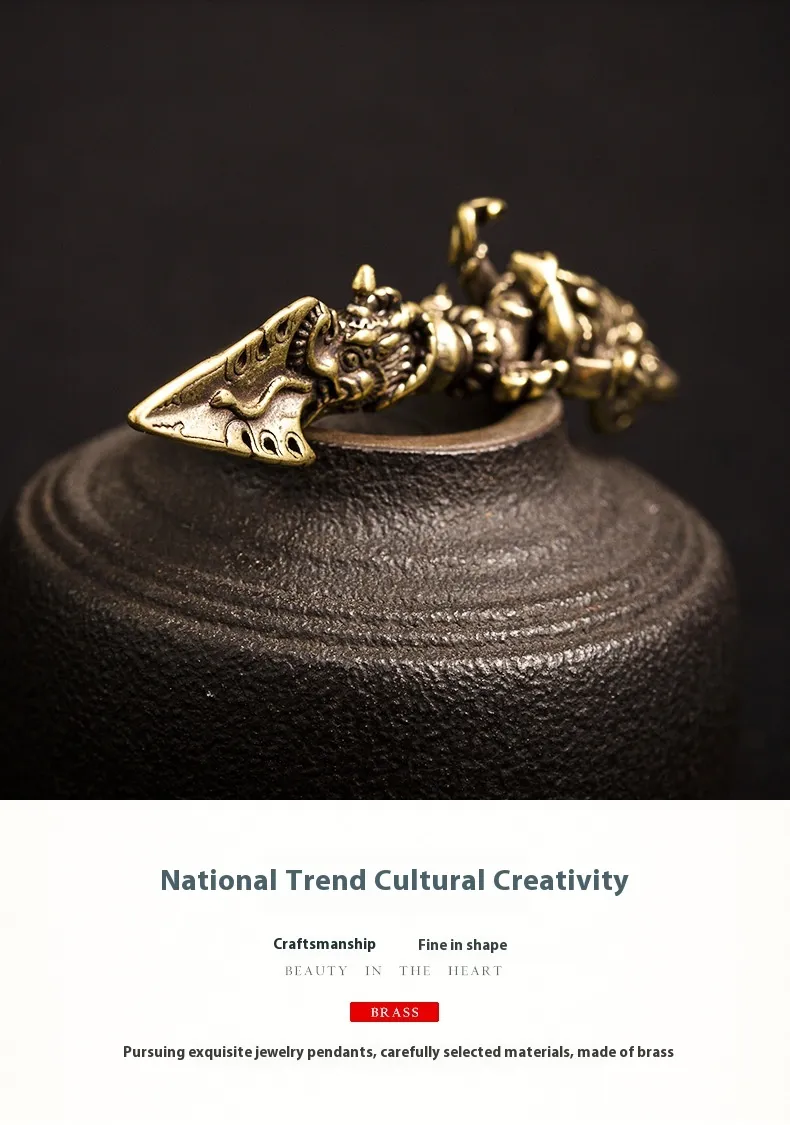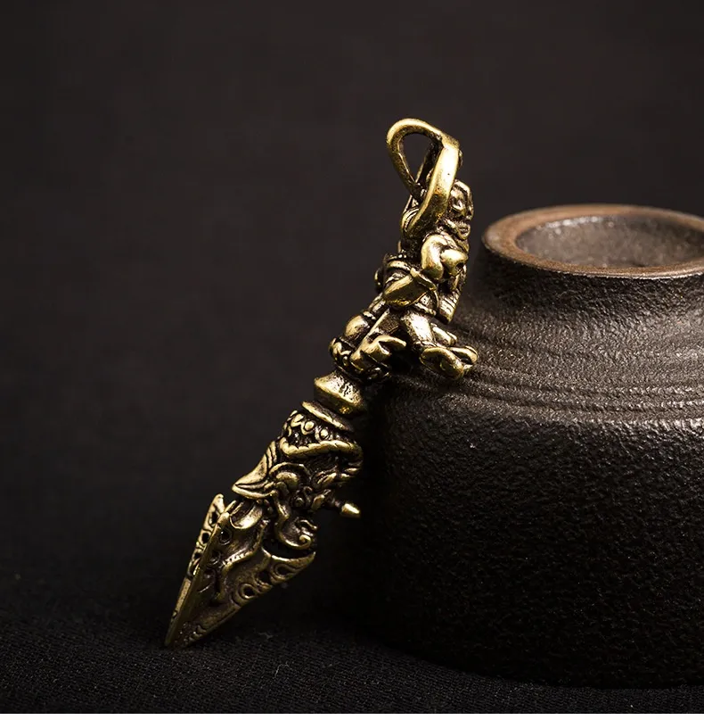 Brass Elephant God King Kong Tibetan Tantra Dharma-vessel Monster Subduing Club Vajra Keychain