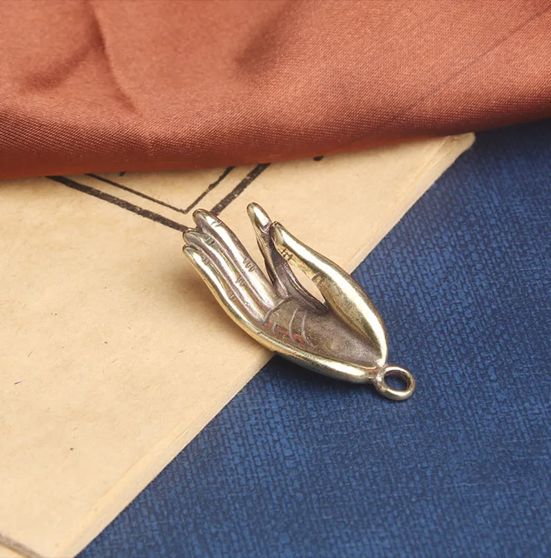 Brass Old Zen Heart Buddha Hand Creative Keychain Pendant