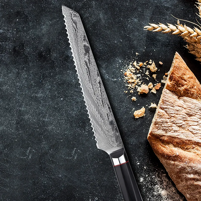 Serrated Blade: The sharp, jagged edge makes it easy to cut through hard crusts without squashing the soft interior.