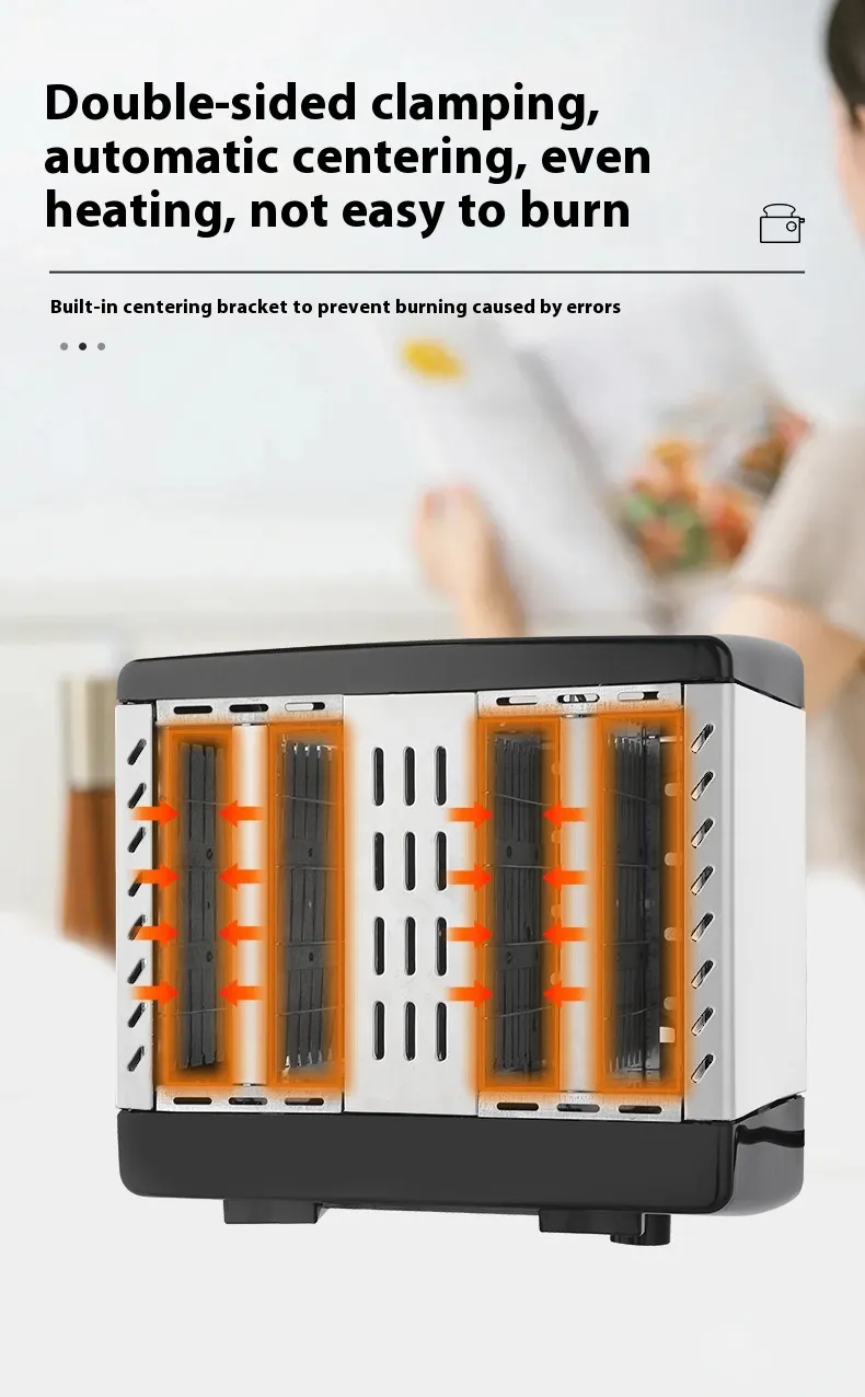 Performance versatility extends beyond basic bread. It can be used for preparing dough, brioche, sweet bread, quick bread, and specialty recipes. The toaster can accommodate bread slices of various thicknesses, allowing flexible use for breakfast, snacks, and lunch.