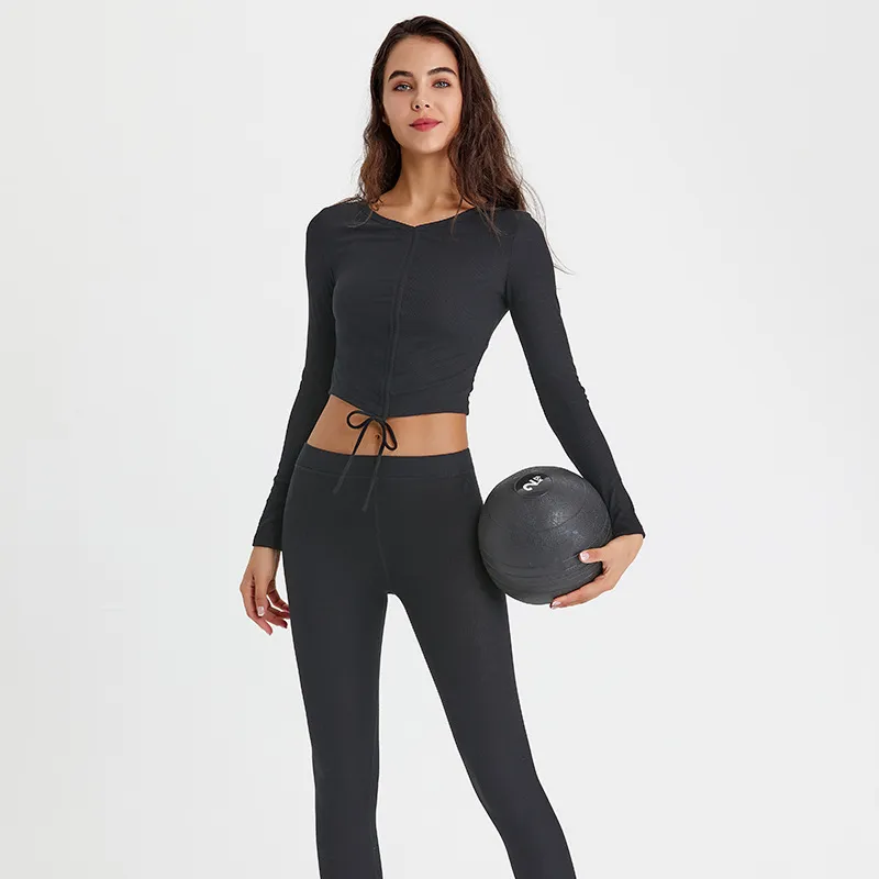 The long-sleeved top offers extra coverage while maintaining breathability and flexibility, allowing for unrestricted movement. The stretchy, form-fitting design of the bottoms ensures a snug yet comfortable fit, providing excellent support during high-impact activities like running, cycling, or circuit training.
