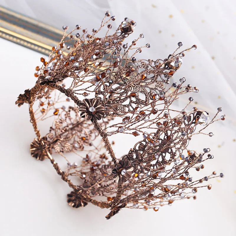 Bridal golden crown tiara baroque round crown