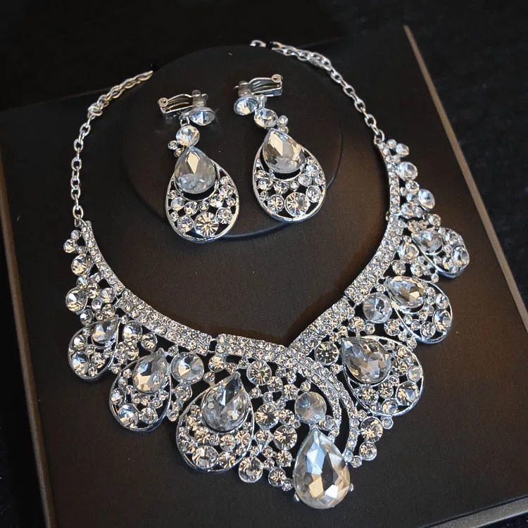 The necklace in this three-piece set is designed to enhance your neckline with elegance and grace. Whether it features delicate chains, sparkling rhinestones, or pearls, the necklace adds a luxurious touch that draws attention to your face and enhances your overall bridal look. Its design is both timeless and modern, making it a versatile piece that pairs beautifully with any wedding dress style, from classic to contemporary.